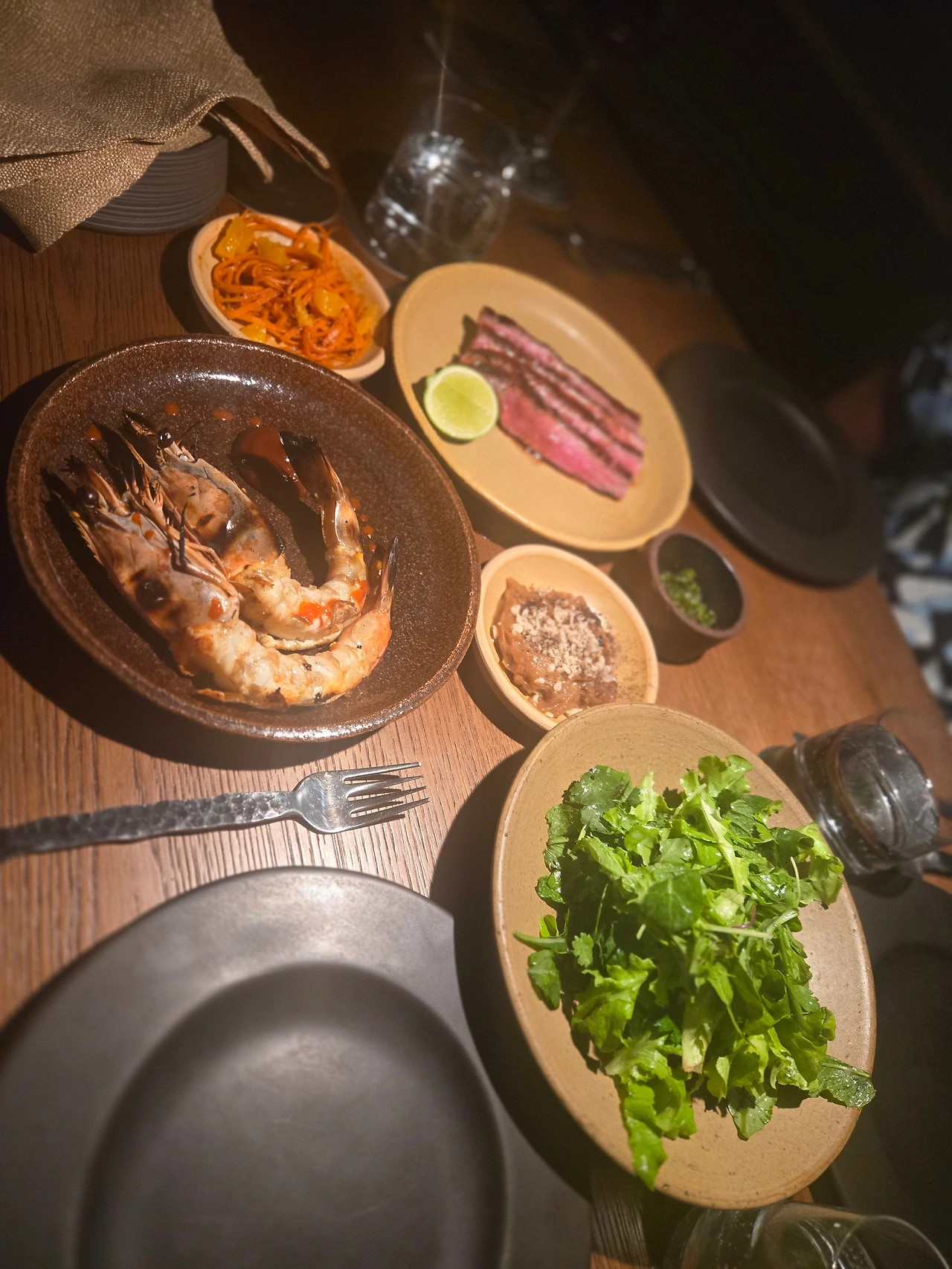 식당은 저희가 좋아하는 분위기를 완벽히 풍겼습니다. 모던하고 심플한 인테리어에 레스토랑만의 독창적인 특색이 잘 드러나 있었습니다. 입구부터 테이블 세팅, 조명까지 모든 디테일이 조화를 이루며 공간 전체를 따뜻하고 세련된 느낌으로 만들어 주었습니다.