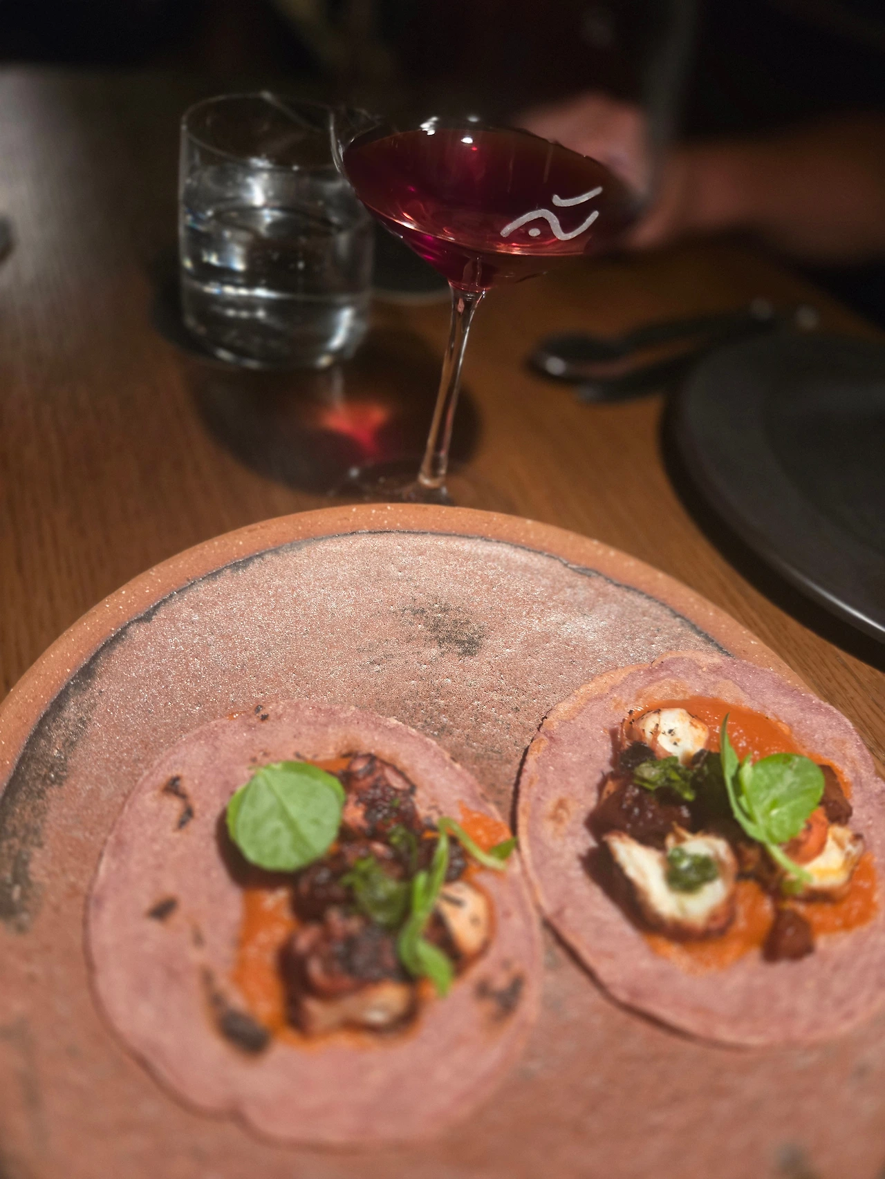 - 서호주산 문어를 사용한 타코는 부드러운 문어와 풍미 깊은 토마토, 소브라사다, 치미추리가 완벽한 조화를 이루었습니다.