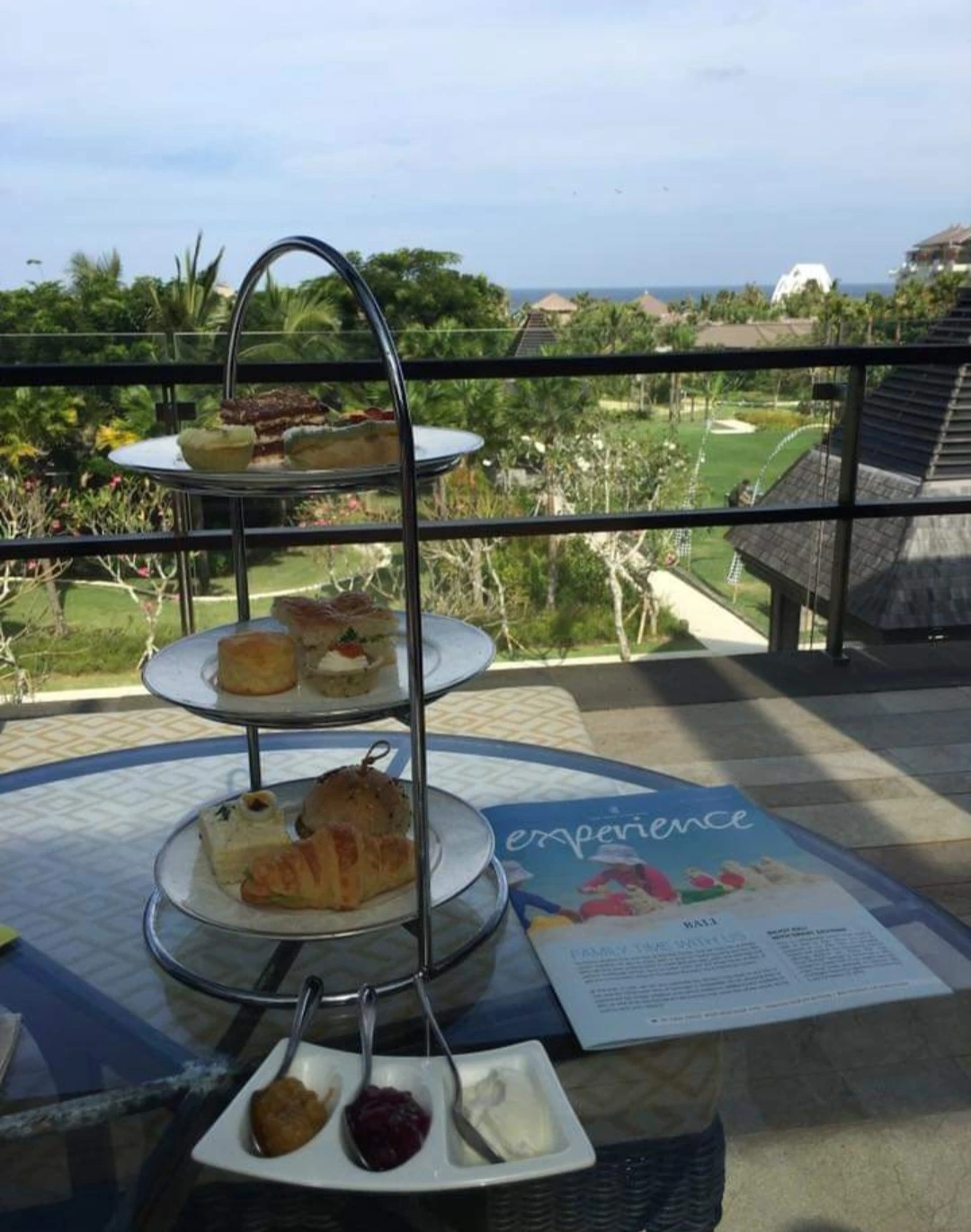 호텔에 도착해서 로비에 들어가면 새파란 바다와 초록의 정원이 보이는데 로비에서 내려다보는 풍경이 너무 완벽한 모습이었다. 체크인을 하는 동안 호텔 직원이 서비스로 애프터눈티를 준비해 주었다. 체크인이 끝나고 우리 가 휴가 동안 머물 주니어 스위트 라군억세스에 들어가니 우리 방 바로 앞에 사용할 수 있는 풀이 눈에 들어왔다. 숙소가 자연에 둘러 싸여 원숭이는 수시로 볼수 있으면 자연 속에서 지내는 느낌을 받았다. 숙소 자체가 인테리이가 예쁘고 가민히 있기만 해도 힐링이 되는 곳이다. 발리 답게 더운 날씨에 우리는 방에 도착하자마자 수영부터 했다.