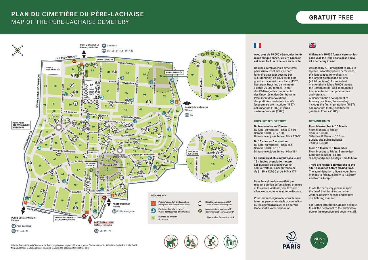 도심 속에 숨겨진 정원처럼 이곳은 묘지인 동시에 기억의 숲이며, 연간 약 300만 명의 방문객은 걸음을 멈출 때마다 각자 새로운 이야기와 마주하게 된다. 이곳 ‘뻬흐라셰즈’는 누군가에겐 마지막 이별의 장소이자, 누군가에겐 잊지 않으려는 기억의 서랍이다.