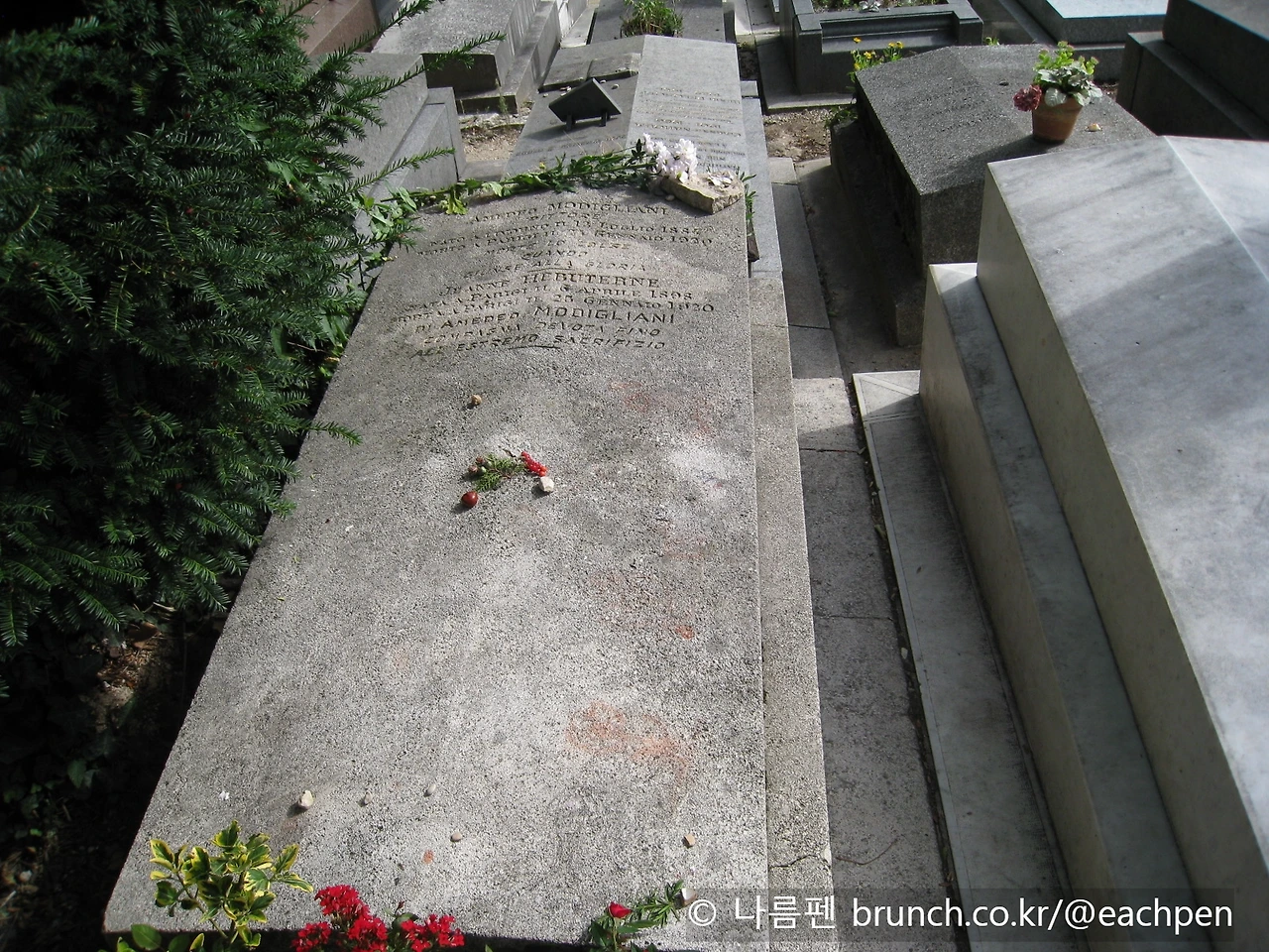 또 다른 한쪽에, 짧은 생애를 격렬한 색과 선으로 불태운 이탈리아 출신 화가 '모딜리아니'(Amedeo Modigliani, 1884~1920)가 묻혀 있다. 촘촘히 붙어 있는 묘소들 사이에서 그를 찾아내는 데, 한참을 서성거렸다.