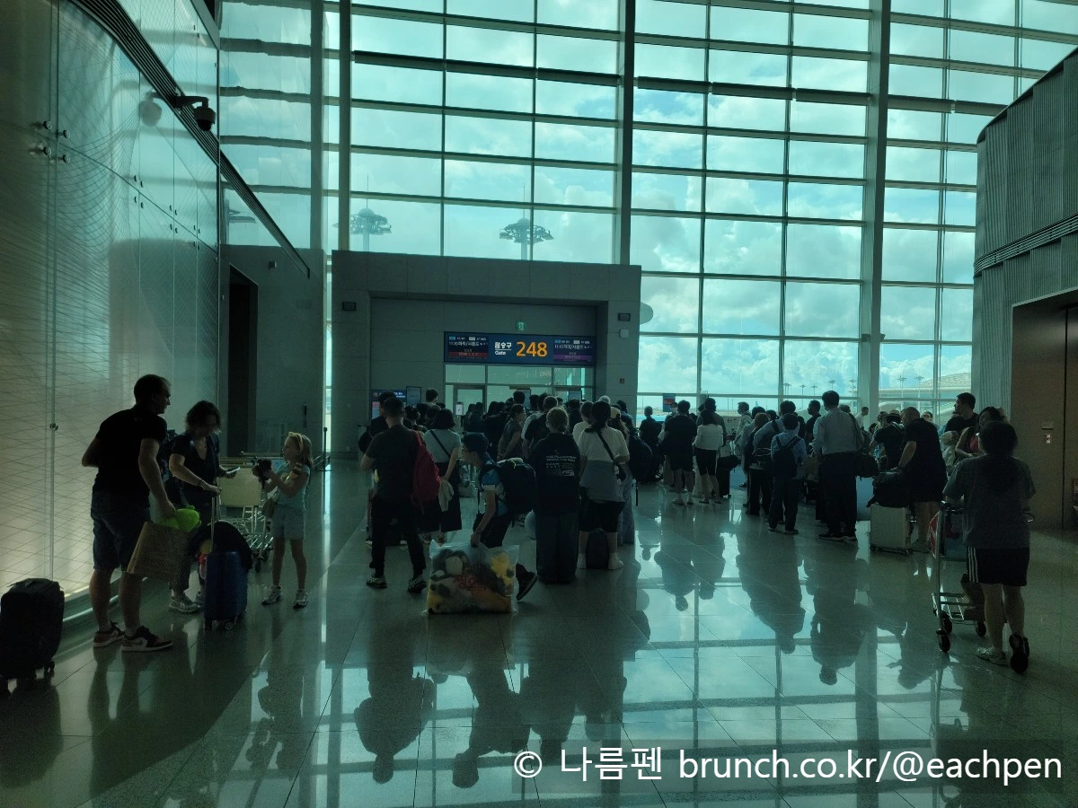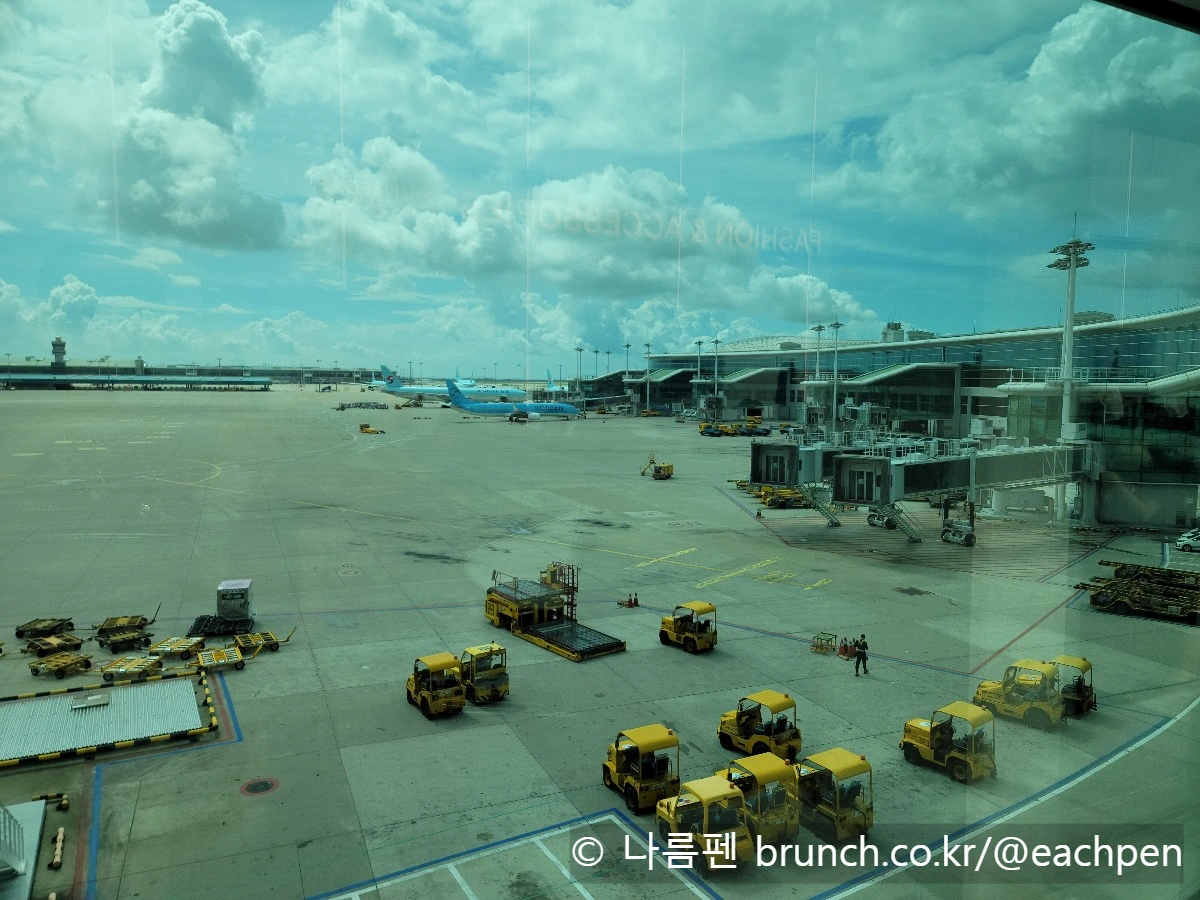 잔을 감싸 쥔 손끝에 남은 열기가 문득 전날을 불러냈다. 인천공항 대합실은 냉방으로 차갑게 식어 있었으나, 떠나온 도시는 여전히 숨 막히는 여름 더위에 갇혀 있었다. 승객들 모두 자리를 찾아 앉았고, 나도 설렘에 이끌리듯 의자에 몸을 기대었다. 그러나 기다리던 출발은 지연되었고, 좌석에 갇힌 기다림은 길고 지루하게 이어졌다. 창밖으로는 활주로의 빛이 일렁였으나, 비행기는 여전히 그 자리에 멈춰 있었다. 시간은 더디게 흘렀고 설렘은 서서히 피로와 무기력 속에 가라앉았다.