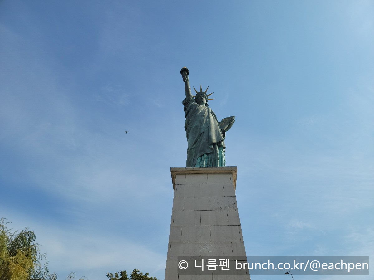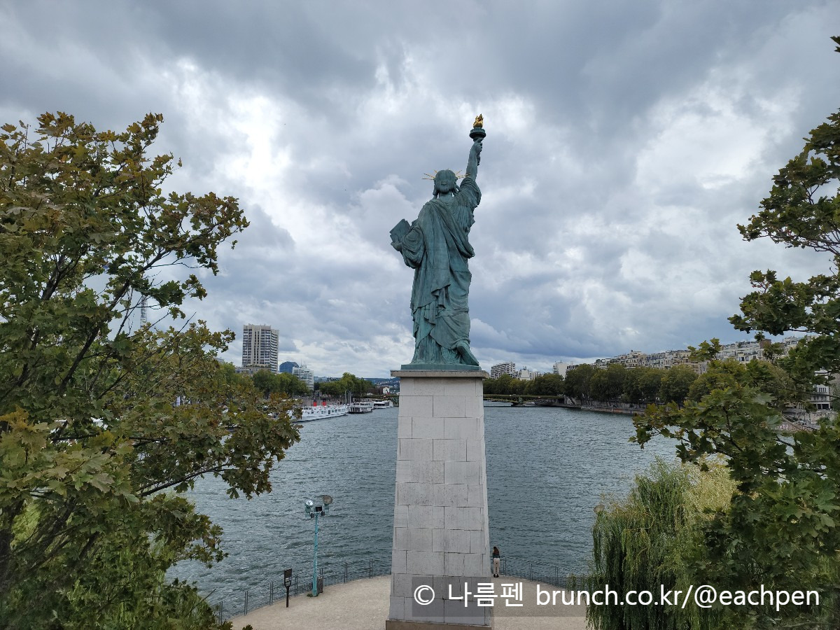 뉴욕 '리버티 섬'(Liberty Island)에 있는 '자유의 여신상'은 본래 프랑스 국민이 미국 독립 100주년을 기념해 건넨 우정의 선물이었는데, 제작과 설치과정 등에 시간이 걸려 실제 완공과 제막은 1886년이었다. '자유의 여신상'의 정식 명칭은 “세계를 비추는 자유(Liberty Enlighting the World)”다. 그 거대한 조각상은 자유에 대한 인류의 열망과 이상 그리고 대서양을 건넌 우정을 증언하듯, 지금도 대서양을 향해 허드슨 강과 바다가 만나는 물목을 바라보고 서 있다. 파리 센강의 자매상 역시 묵묵히 침묵 속에서 같은 이야기를 이어가고 있었다.