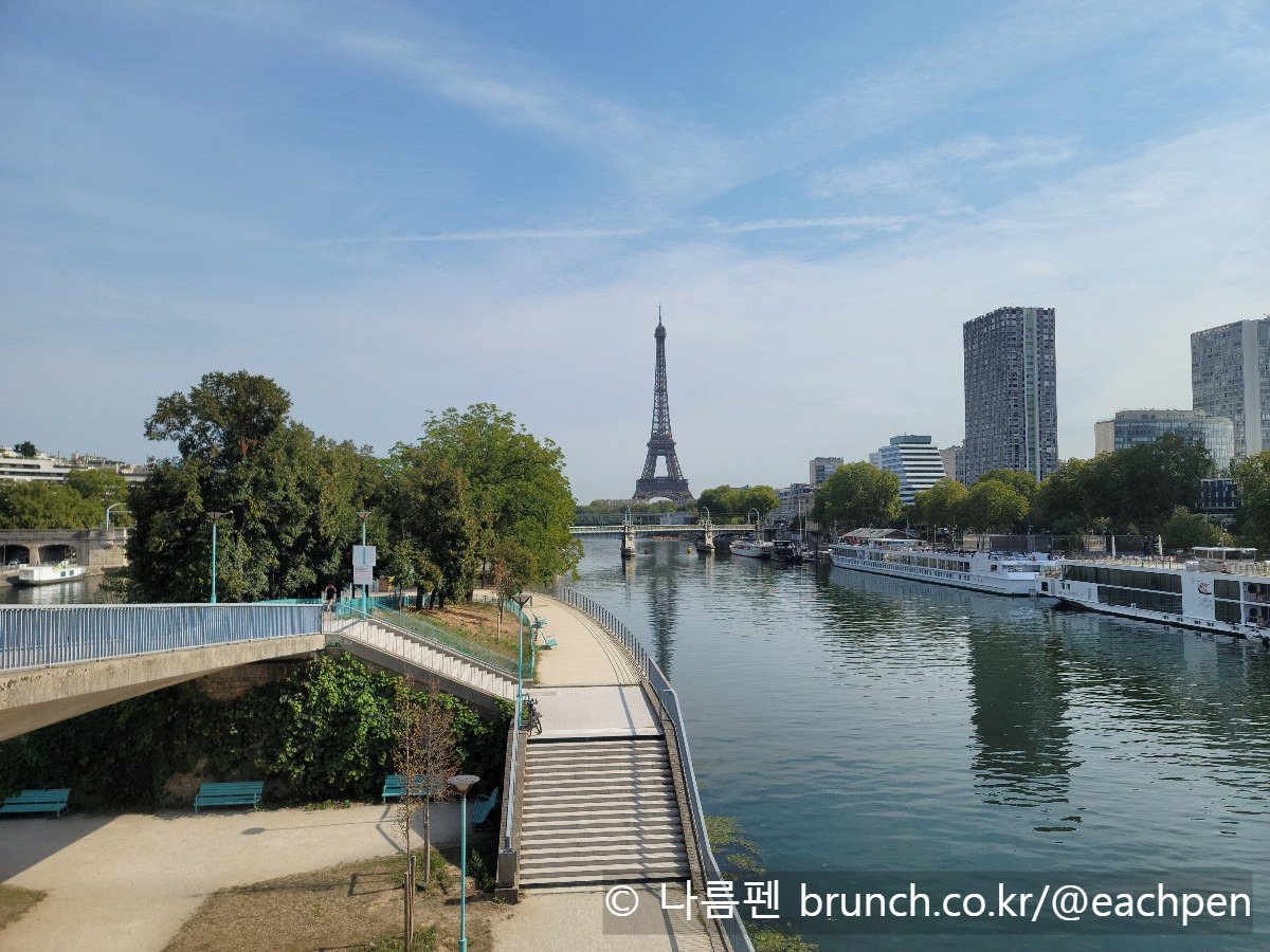 식당을 나서자 비는 다시 굵어졌다. 우산 위로 세차게 떨어지는 빗방울은 드럼 스틱처럼 나름의 소리를 만들어냈다. 우리는 메트로 샤흘르 미셸 역(Charles Michels) 입구를 지나 센강변 쪽으로 걸음을 옮겨갔다. 이곳 사람들이 빠른 걸음으로 몰려들고 빠져나가는 지하철역 입구에서는 그들의 일상에 우리도 잠시 섞였다가, 곧 다시 이방인의 자리에 돌아왔다.