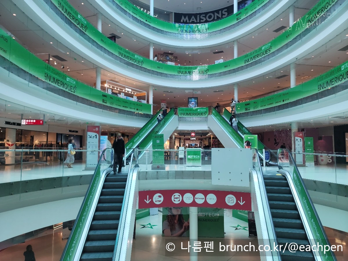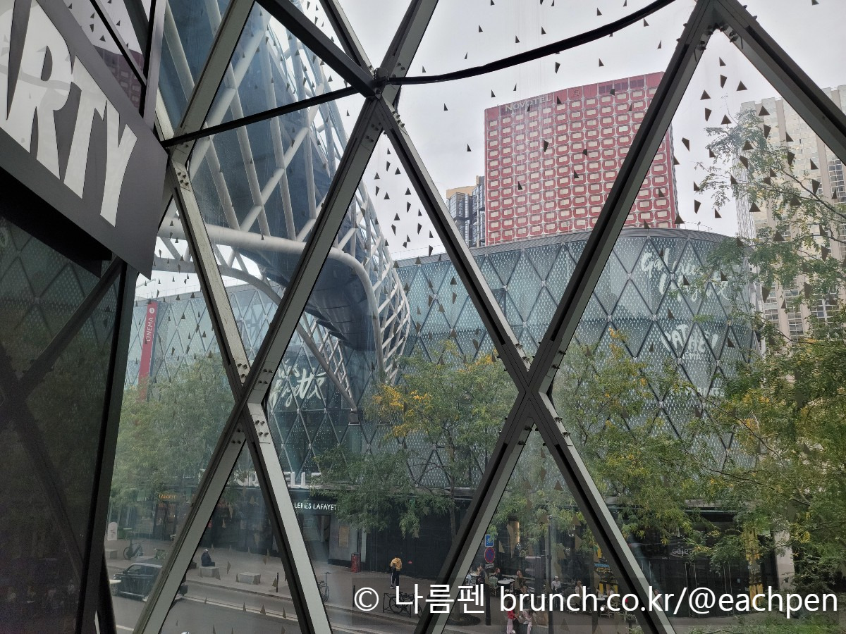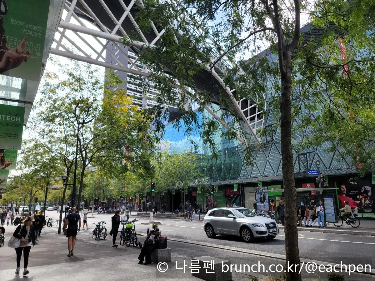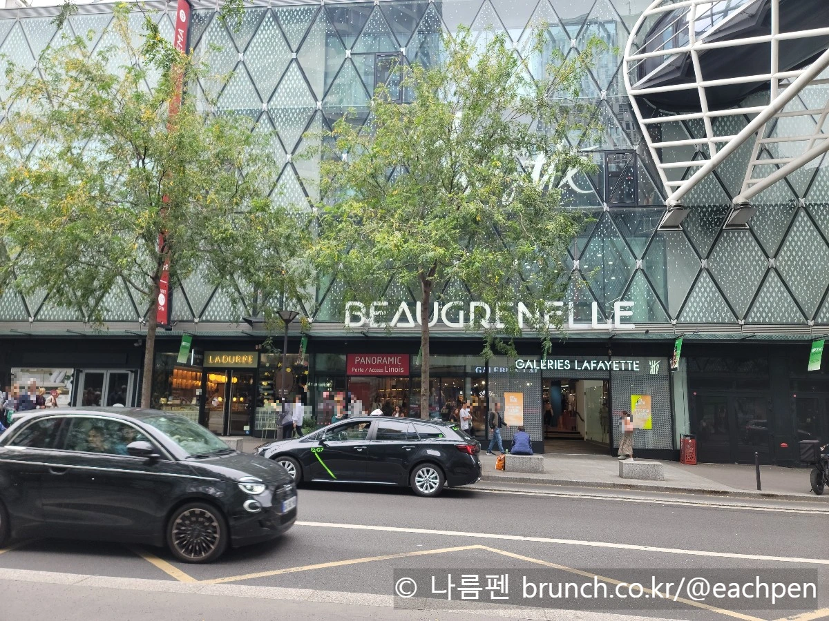 빗줄기에 쫓기며 센강 쪽으로 걸음을 조금 더 옮기자, 도로 양편으로 흐린 하늘을 배경 삼아 빗속에서도 반짝이는 유리로 된 건축물이 눈에 들어왔다. 그것이 바로 ‘보그르넬’(Beaugrenelle) 쇼핑몰이었다.