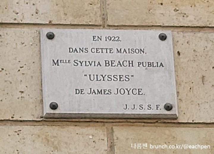 오늘도 오데옹 길 12번지의 빛바랜 벽면에는 연회색 석재로 된 기념 명판이 조용히 걸려있다. 그 위에는 "1922년에 이 건물에서 실비아 비치가 제임스 조이스의 《율리시스》를 출간하였다"라는 문장이 새겨져 있다.