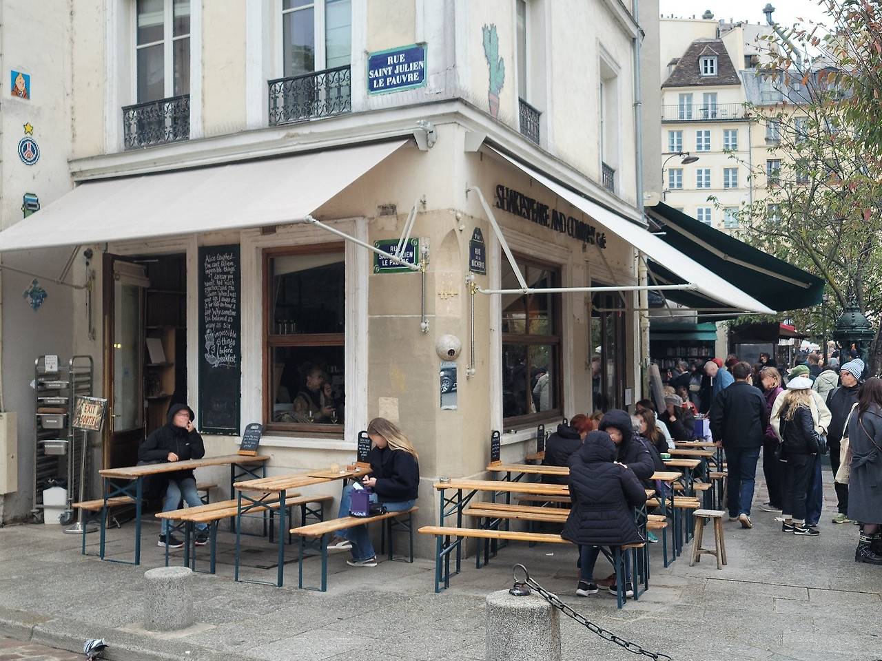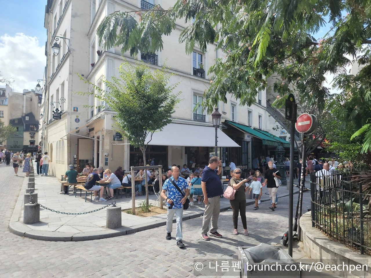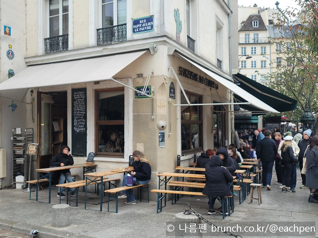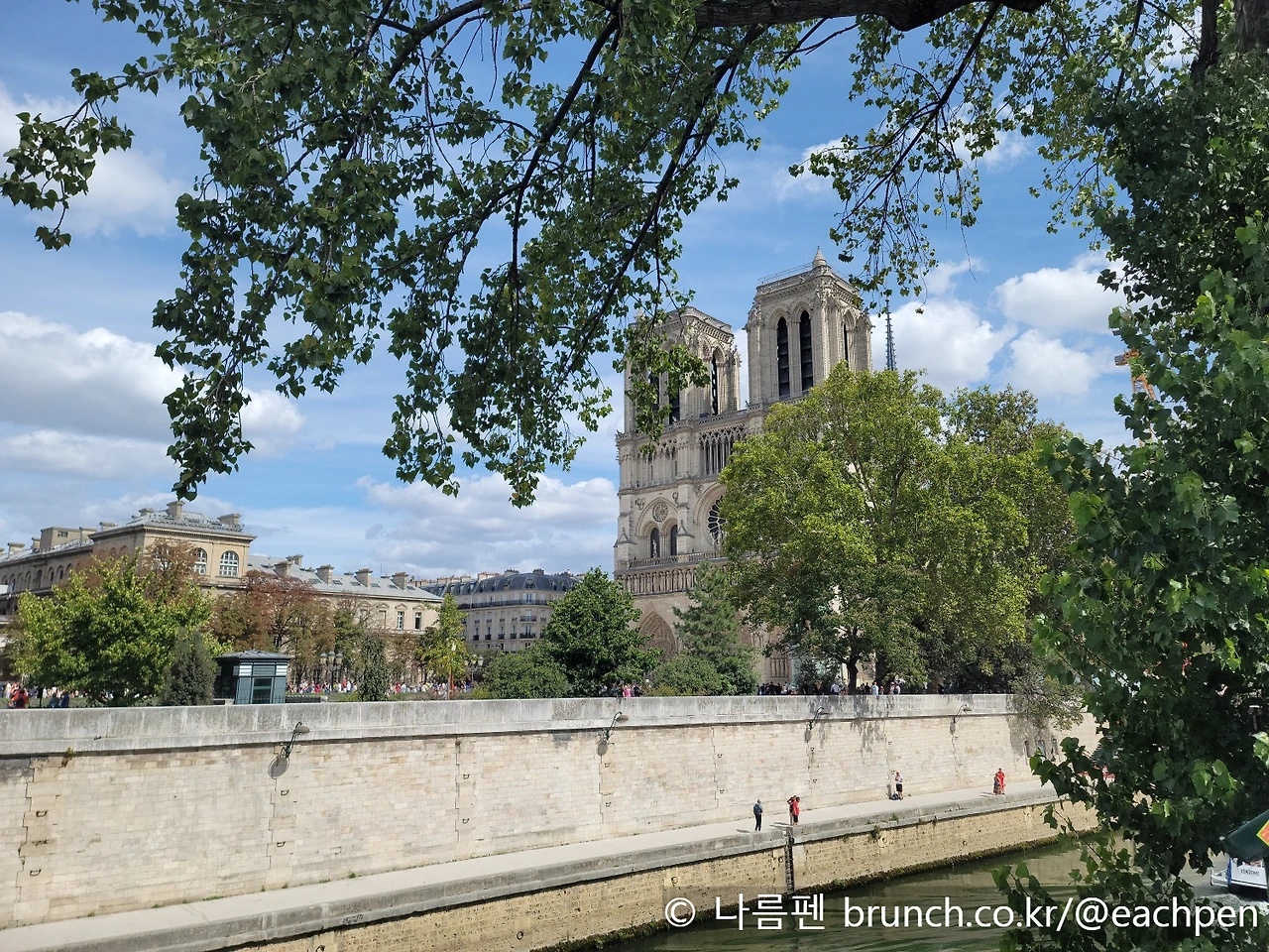 서점 앞에는 기다림의 줄이 늘어서 있었고, 그 기다림마저 문학의 한 장면처럼 이곳 풍경의 일부가 되어 있었다. 강 건너로 보이는 노트르담 대성당의 첨탑이 손에 잡힐 듯 가까이 다가와, 이곳의 시간을 한층 더 운치 있게 만들어 주고 있었다.