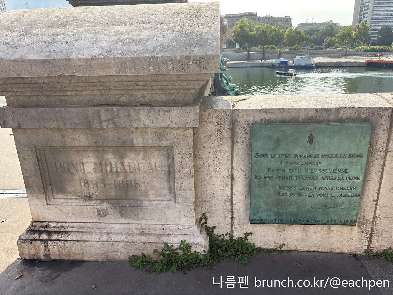 그래서인지 미라보 다리에는 아폴리네르의 시구 몇 줄을 새긴 작은 명판이 붙어 있다. 이곳을 찾는 이들은 사람들은 그 앞에서 발걸음을 멈추고, 강물과 시구를 번갈아 바라본다. 그 순간, 그들은 모두 자신의 시간과 세월을 떠올리며, 마음속에 '자신만의 미라보 다리'를 갖게 된다.