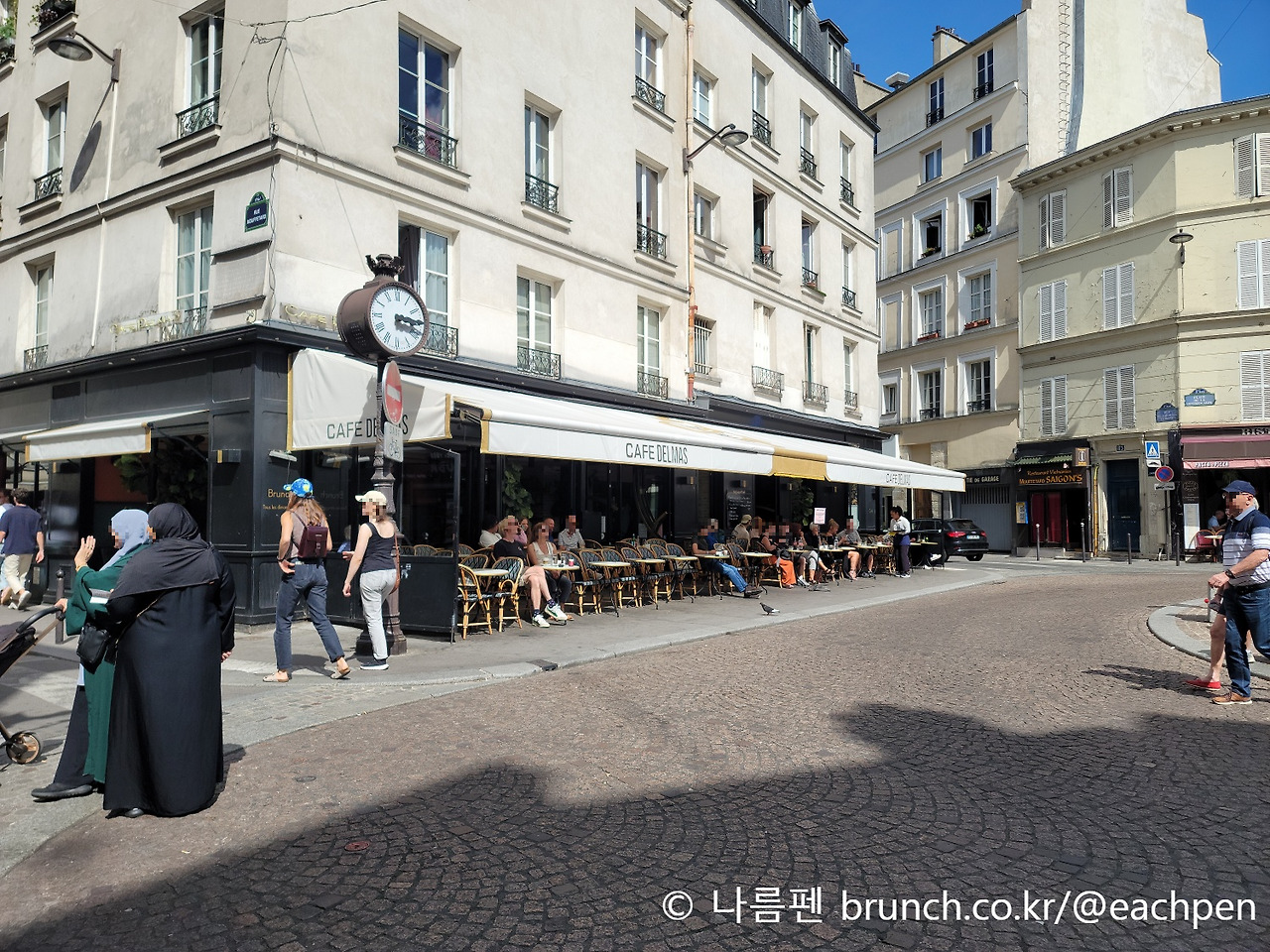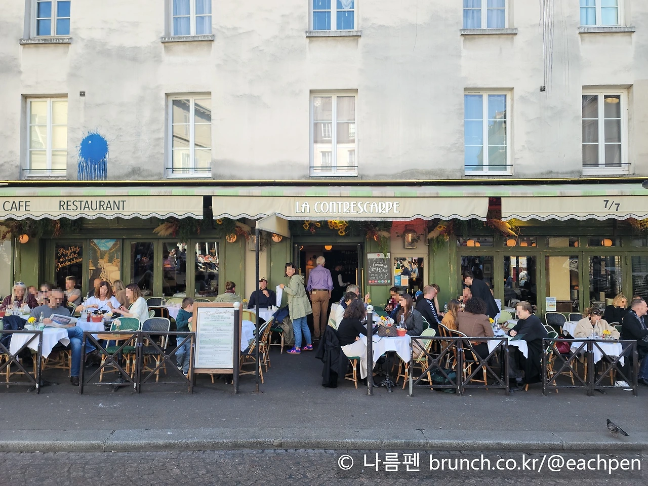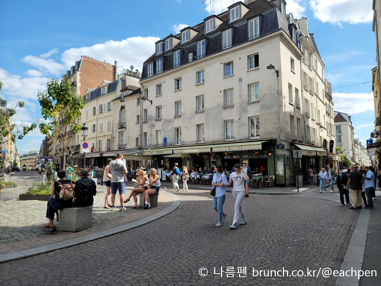 나는 지금 광장이 한눈에 들어오는 '라 꽁트르스카르프'(La Contrescarpe)의 테라스에 앉아, 저쪽 길에서 걸어오는 건장한 체구의 그를 눈으로 좇고 있다. 그에게는 망설임이 없다. 이 길은 그의 하루에 이미 익숙한 반경이다. 광장과 맞물린 그 길 끝에 이르자, 그는 멈추지 않고 곧바로 오른쪽으로 몸을 돌려 한 카페 앞을 스쳐 지난다.