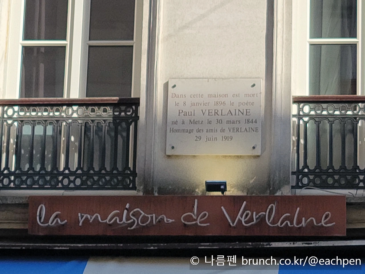 이 건물은 이미 한 번의 문학적 끝을 겪은 장소였다. 프랑스 시인 폴 베를렌(Paul Verlaine)이 가난과 병 속에서 1896년 생을 마감한 곳으로, 헤밍웨이는 그 사실을 잘 알고 있었다. 지금은 이 건물에 시인을 기리는 '라 메종 드 베를렌'(La Maison de Verlaine)이라는 이름의 레스토랑이 들어서 있다.