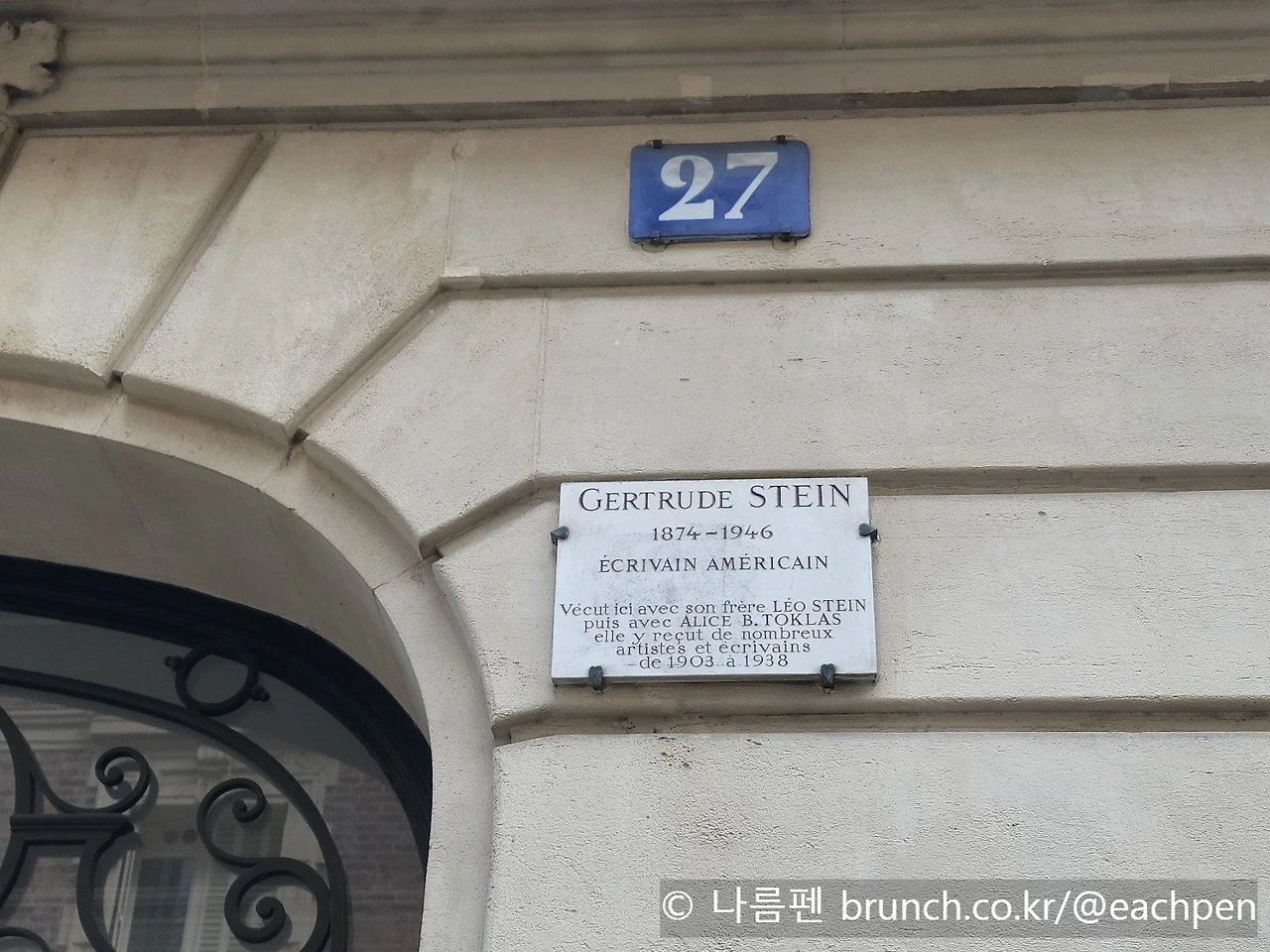 뤽상부르 공원을 서쪽으로 몇 걸음 벗어나면 닿는 플뢰뤼스 길(Rue de Fleurus) 27번지. 당시 파리에서 젊은 미국 작가들을 후원하던 미국인 작가 거트루드 스타인(Gertrude Stein, 1874~1946)의 집에 그가 들른다. 그녀의 아파트는 예술가들이 드나들며 교류하던 공간으로 예술과 문학의 살롱(Salon)이었고, 그에게는 아무 때나 들러도 괜찮다고 했다. 그는 어느 날 그곳에서 '잃어버린 세대'(Lost Generation, 길 잃은 세대)라는 말을 처음 듣게 된다.