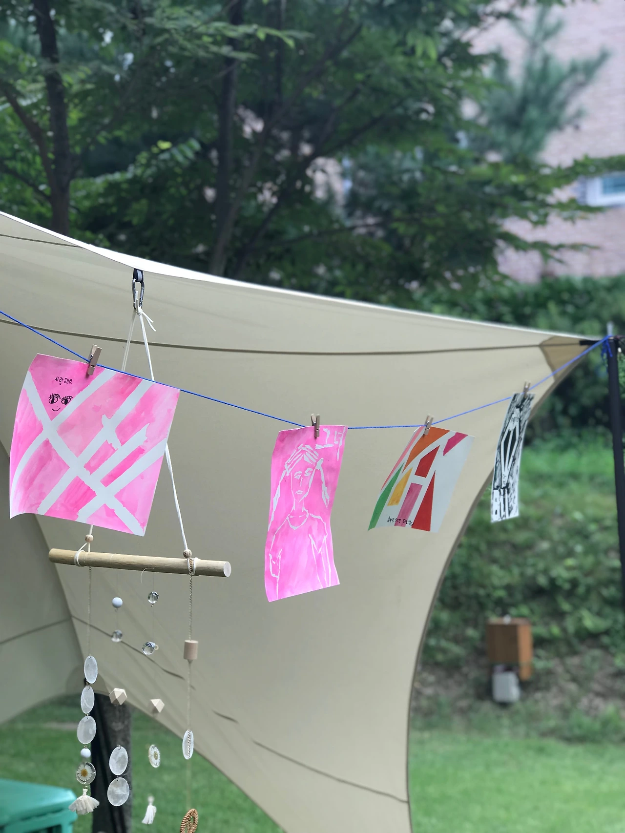 캠핑에서는 텐트에 걸어 '캠핑 미술 전시회'를 열 수 있다.