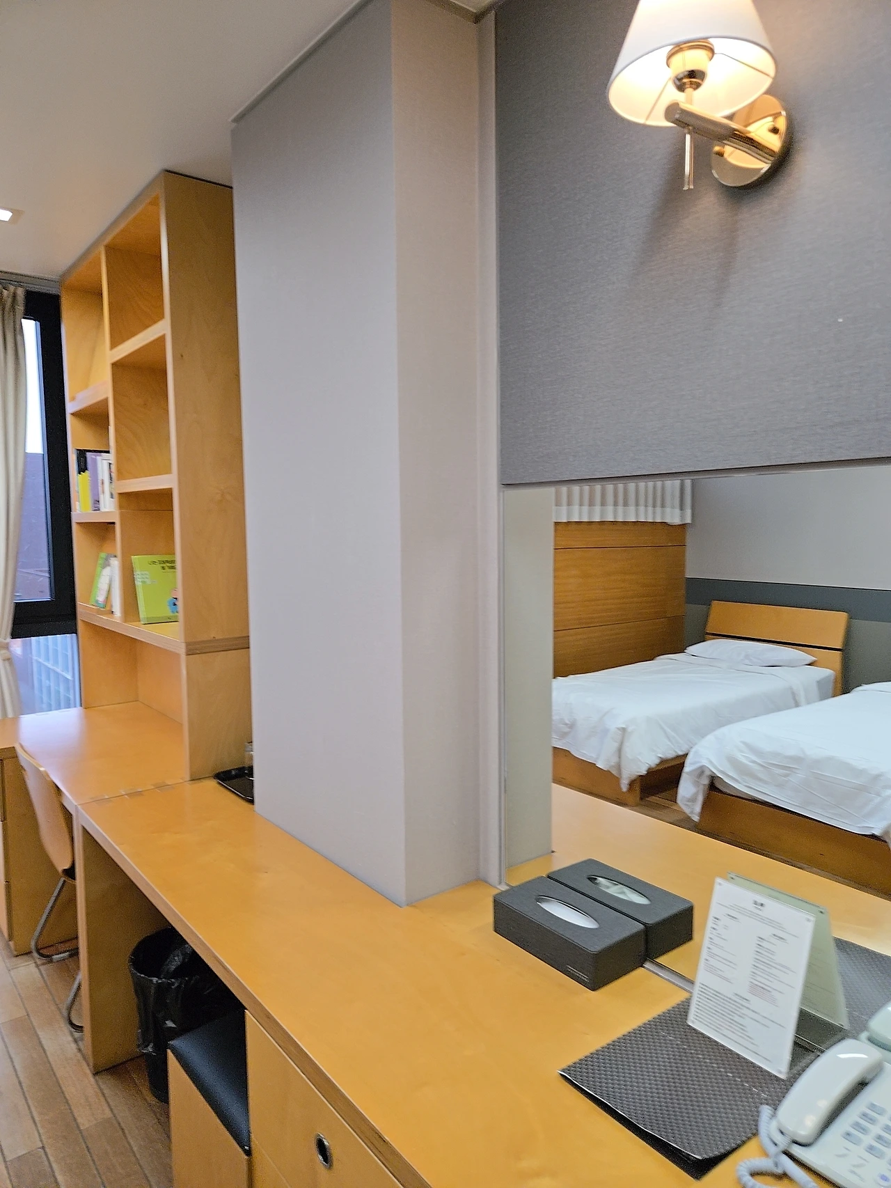 우리가 묵었던 TV 없는 방은 소란스러운 도시 생활에서 잠시 벗어나 책을 벗 삼아 시간을 보낼 수 있다.