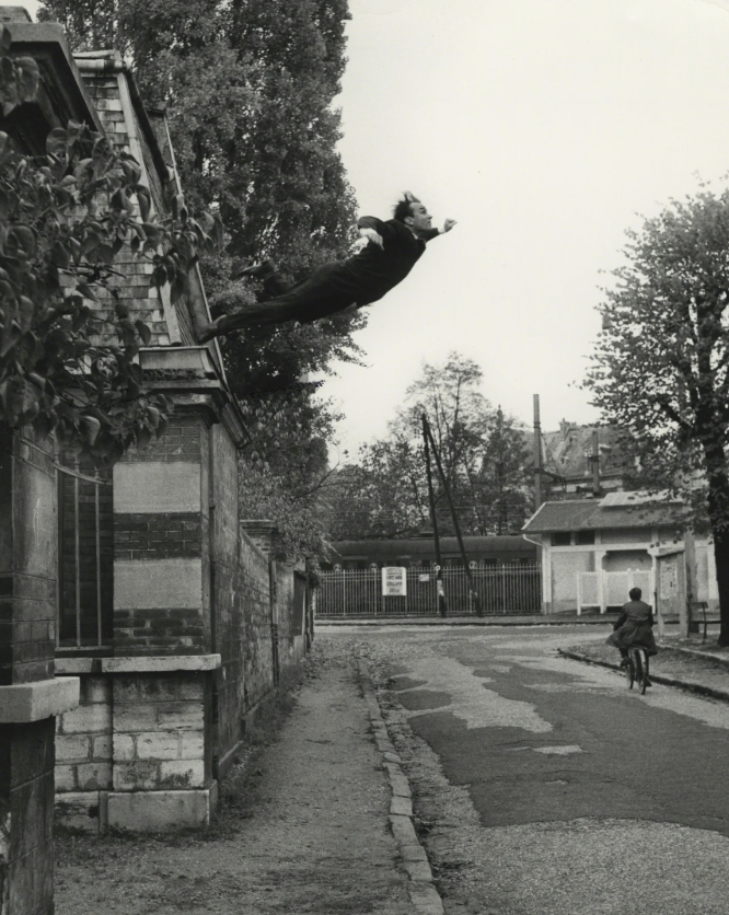 1960년 프랑스 예술가 이브 클랭(Yves Klein)은 당시는 흔하지 않았던 사진을 합성하는 ‘포토몽타주’ 기법으로, 자신이 건물에서 뛰어내리는 듯한 사진을 담아 소형 신문으로 출간합니다. <공허 속으로 뛰어들기(Leap into Void)>라고 이름 붙여진 이 사진 작품은 당시 사람들을 깜짝 놀라게 했습니다. 그 사진이 명확히 비극적인 위험을 예상할 수 있게 만들기 때문입니다.