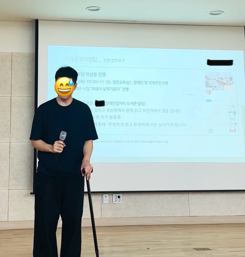 발표가 부담스러운 건 사실이지만, 제 글을 복지관 직원분들께 소개를 한다는 사실이 설레기도 했습니다.