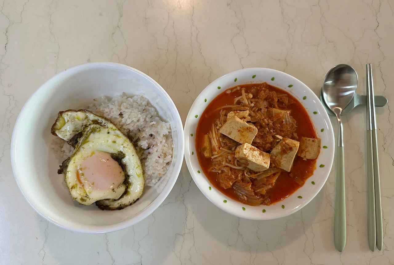 집에 도착했습니다. 빠르게 샤워를 하고 나와 주방 형광등을 켰습니다. 냄비에 엑스트라버진 올리브유와 참치캔 기름, 김치를 넣고 타지 않게 볶아줍니다. 참치캔 기름을 왜 뺍니까. 이게 맛의 원천입니다. 물이 끓고 있습니다. 코인육수 두 알과 두부, 팽이버섯, 청양고추를 넣어줍니다. 고춧가루와 김칫국물로 색을 내줍니다. 참치액젓과 국간장, 소금으로 간을 해줍니다. 참치는 마지막에 넣어야 합니다. 그래야 안 텁텁합니다.