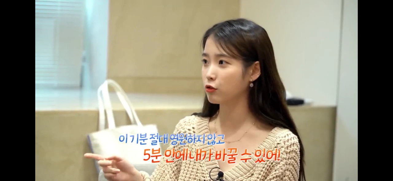 한 영상에서 ‘기분이 안 좋을 때 어떻게 푸냐’는 질문에 아이유 님이 이렇게 답한 적이 있다. ‘빨리 몸을 움직여야 해요. 그 기분에 진짜 속지 않으려고 노력해요. 이 기분 절대 영원하지 않고, 5분 안에 내가 바꿀 수 있어’라며, 설거지를 한다던지, 소포를 뜯는다던지 한다는 것이다.