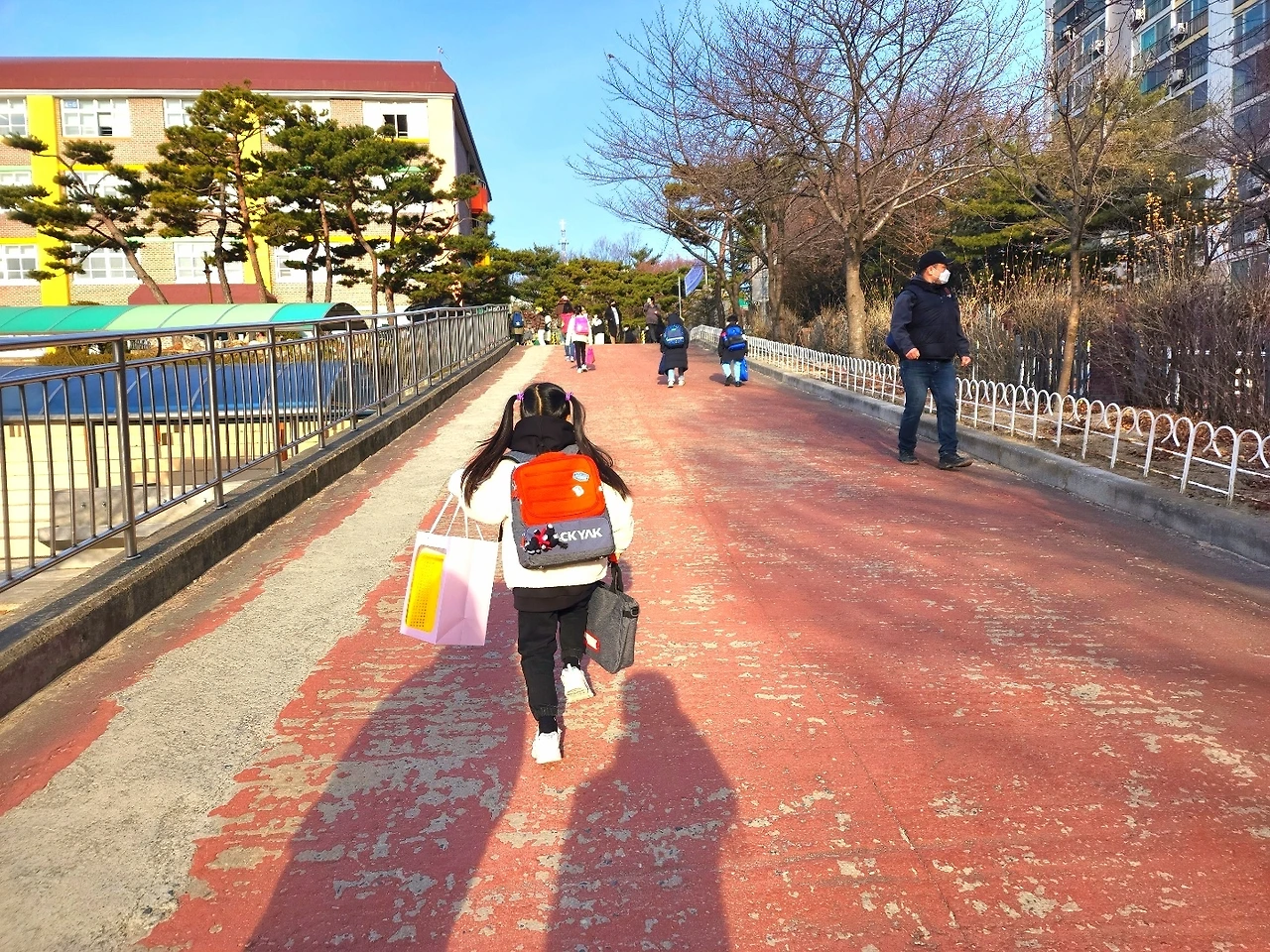 처음으로 아이의 등교길을 따라가 보았다. 책가방을 메고 실내화 가방을 손에 든 아이를 뒤에서 보니 마음이 조금 짠하기도 하고 신기하기도 하고 설레기도 하고 조금 슬프기도(?) 했다. 하여튼 복잡 미묘했다.