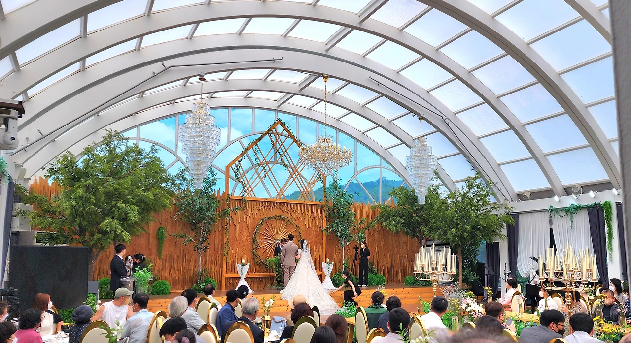 결혼식장은 천장과 앞쪽이 유리로 되어 있어서 하객석에서 맑은 하늘을 볼 수 있었다. 결혼식 주례사의 내용은 거의 비슷하다. 신랑 신부는 부부의 연을 맺었으니 서로 아끼고 사랑하며 살 것. 혼인서약도 대동소이하다. 나 OOO는 비가 오나 눈이 오나 신부 OOO를 아내로 맞아 아껴주고 사랑할 것을 맹세합니다.