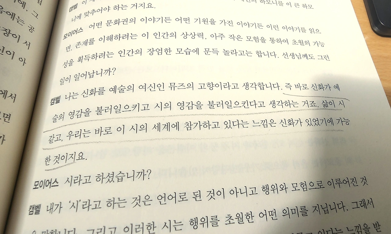 신화와 영웅이라는 다소 알쏭달쏭한 주제들이 그나마 읽어가기 좀 더 수월하게 다가온 것은 내용 전개가 이런 대담, 대화의 형식으로 진행되었기 때문이리라.