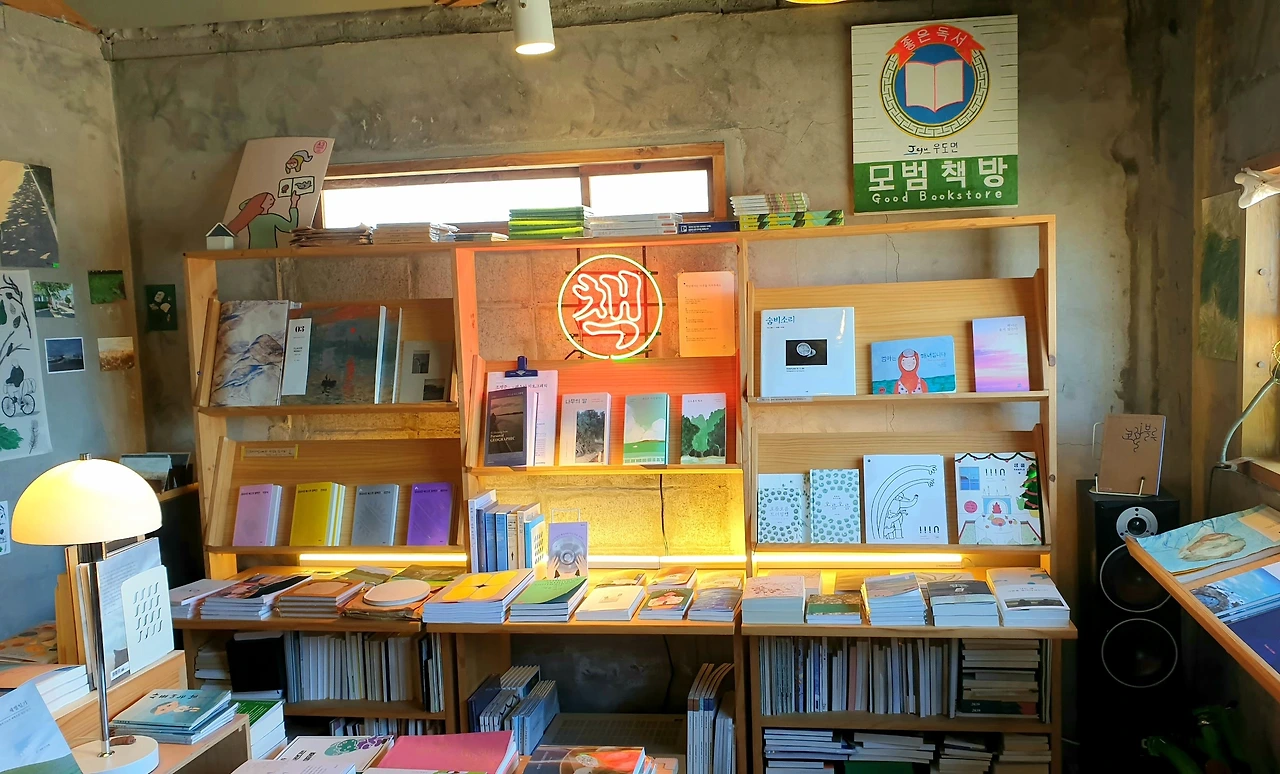 제주의 많은 장소와 공간들이 기억에 남지만 굳이 한 곳을 꼽으라면 우도의 '밤수지 맨드라미'를 얘기하겠다. 우도의 유일한 서점 '밤수지 맨드라미'. 어감은 보드랍고 예쁘지만, 검색하면 '해계두목 곤봉바다맨드라미과의 자포동물. 군체는 납작한 우산 모양을 하고 있다.'라는, 다소 기괴하고 무서운 설명이 나오는 밤수지 맨드라미.