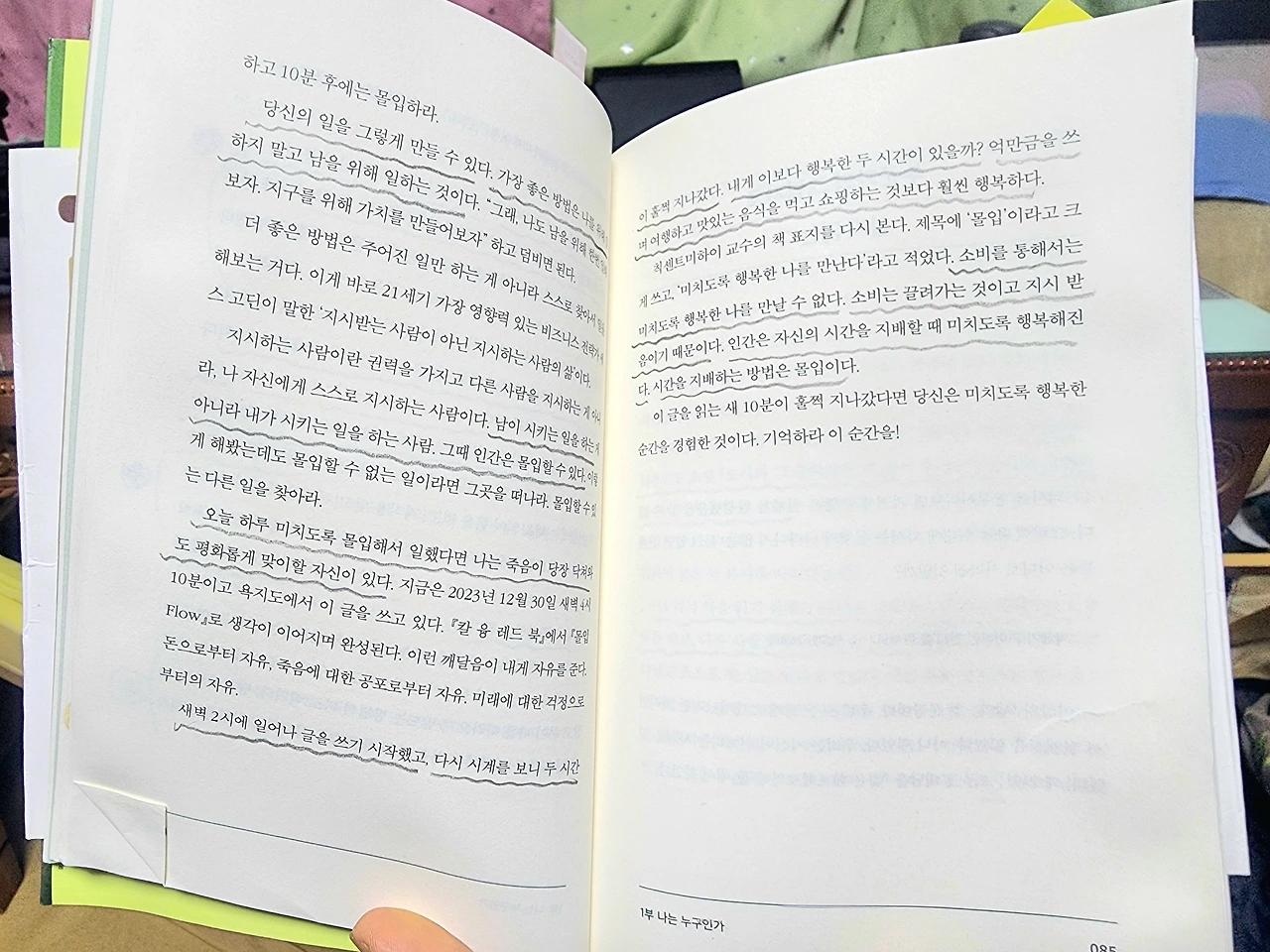 오늘 하루 미치도록 몰입해서 일했다면 나는 죽음이 당장 닥쳐와도 평화롭게 맞이할 자신이 있다. 지금은 2023년 12월 30일 새벽 4시 10분이고 욕지도에서 이 글을 쓰고 있다. 새벽 2시에 일어나 글을 쓰기 시작했는데 다시 시계를 보니 두 시간이 훌쩍 지나갔다. 내게 이보다 행복한 두 시간이 있을까? 억만금을 쓰며 여행하고 맛있는 음식을 먹고 쇼핑하는 것보다 훨씬 행복하다. 85p