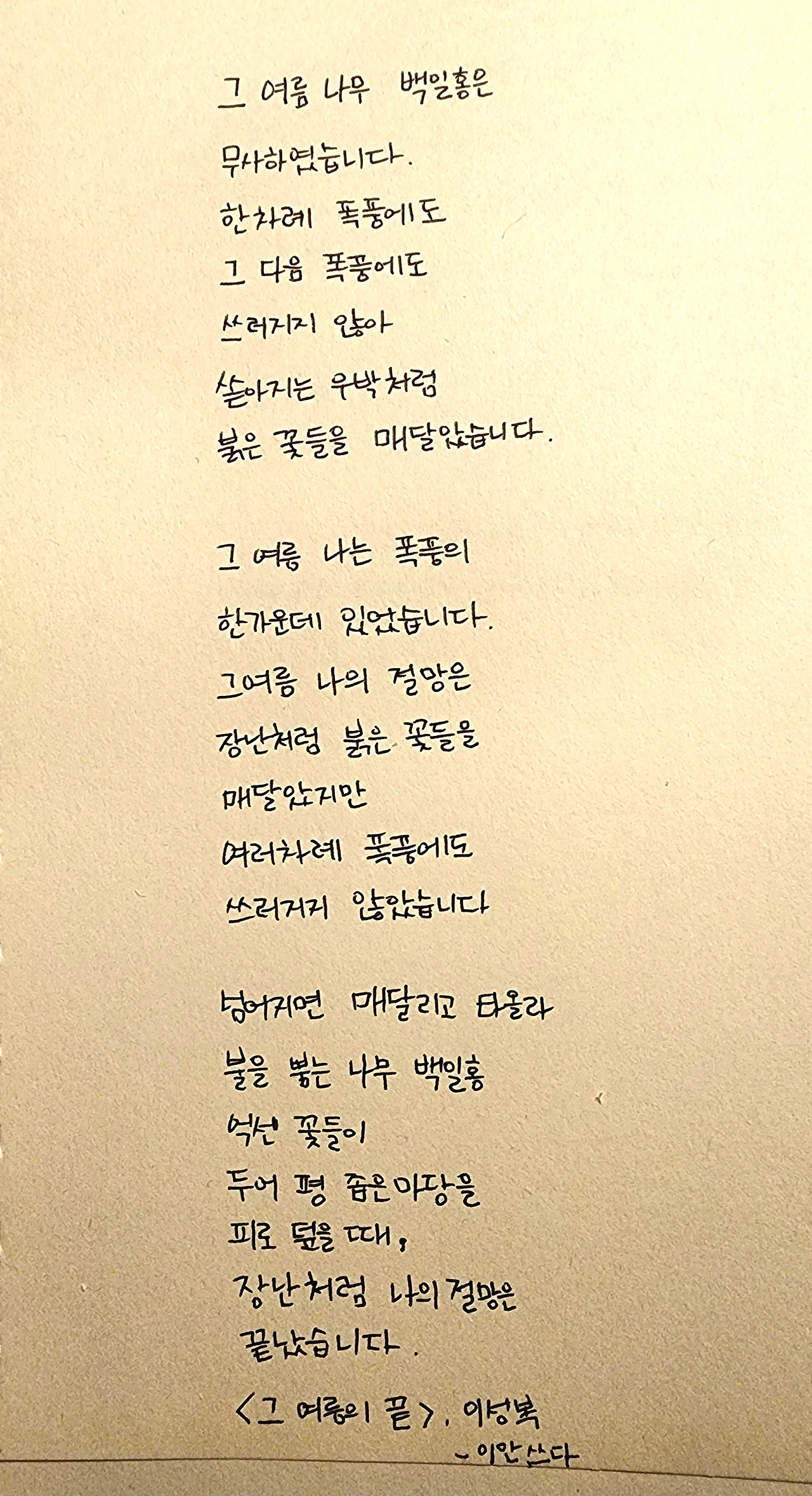 그 여름 나의 절망은 붉은 꽃들을 매달았지만