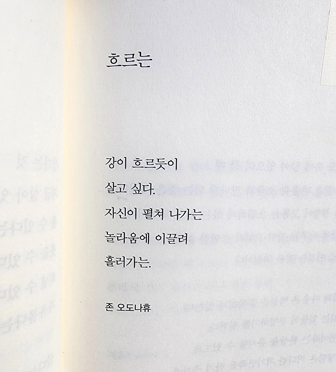 짧지만 깊은 여운과 감탄이 나오는 시. 강을, 자신이 펼쳐 나가는 놀라움에 이끌려 흘러간다고 표현하다니. 자연스레 굽이굽이 흐르는 물줄기를 떠올리게 된다. 개울물로 시작해서 바다를 향해, 갈수록 거대한 물의 흐름을 만들어내는 강.
