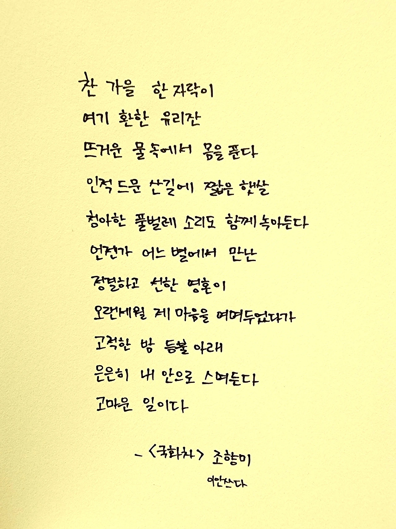 주어진 삶의 모든 것들이 글감이라 믿습니다. 소소한 추억을 오래 기억하고 싶어 씁니다. 웃음과 여유를 곁에 두기 위해 씁니다. 누군가를 아끼고 사랑하기 위해, 오늘도 씁니다.
