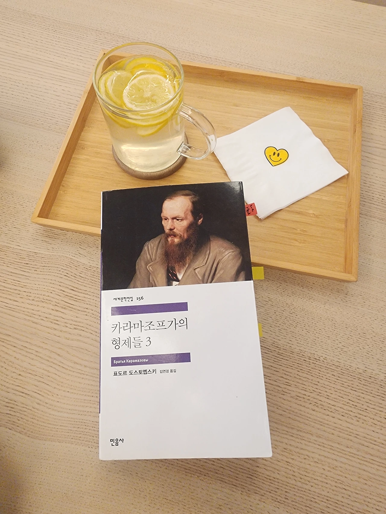 아무도 내주지 않았지만, 혼자 인생숙제 라 여겼던 카라마조프가의 형제들. 대학교 기숙사 선배가 읽길래, '오, 이 형 이런 책을 읽네' 했고, 이어령 선생님이 '카라마조프가의 형제들' 리뷰한 글을 읽었을 땐 언젠가 직접 책으로 읽어봐야겠다고 다짐했었다. 그러다 마지막 결정타는 차인표 씨. 세바시에서 매일 밤 자기 전 '카라마조프가의 형제들'을 조금씩 조금씩 읽고 마침내 그 벽돌책을 다 읽었을 때 그 희열과 뿌듯함이 자기 삶의 변곡점이었다고. 이게 결정타였다. 그래, 이제 읽어야지. 더 이상 미루지 말아야지.