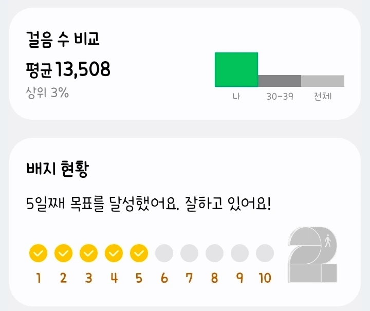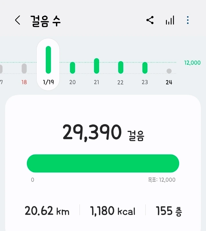 한파주의보로 영하 14도를 찍던 지난 주간, 어쩌다 보니 걸음수 상위 3% 안에 들어가 있었다. 월요일에 수락산을 정상을 찍고, 이날 총 29000보를 걸은 게 기점이 됐다. 화요일에는 직장에서 꽤 멀리 있는 하나은행에 걸어갔다 오느라, 수요일에는 퇴근 후 지하철역 세 정거장 거리를 걸어서 당근으로 아이패드 케이스를 받으러 갔다 오니, 하루 걸음 목표치인 12000보를 계속 달성해버렸다.