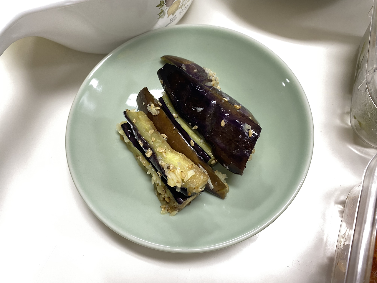 그런 내가 오늘 가지를 사서 구운 가지장을 한 번 만들어 보았다. 아이와 함께 먹기 좋아 보이는 누군가의 레시피를 어설프게 따라 해 보았다. 가지를 사서 먹기 좋은 크기로 이리저리 자르고 올리브유를 두른 팬에 살짝 구워준다. 소금도 뿌려준다. 잘 구워진 가지는 반찬통에 넣어두고 양념장을 만든다. 간장, 올리고당, 다진 마늘, 식초를 넣고 소금도 조금 톡톡 뿌려준다. 물도 적당히 넣어준 후 전자레인지에 1분 정도 윙 돌려준다. 그렇게 만들어진 양념장을 가지가 담긴 반찬통에 자작하게 넣어주면 끝난다. 아직 간이 배이지 않았을 가지 몇 조각을 아이에게 잘라주고, 접시에 담아 남편에게도 내놓아 보았다.
