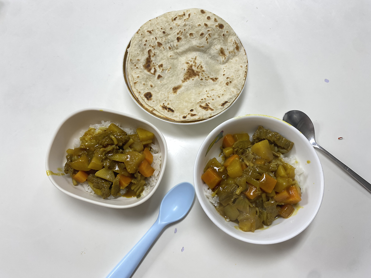 어느 날 냉장고를 여는데 카레가 아닌 다른 요리를 떠올리기 어려울 식재료가 갖춰져 있었다. 당근과 양파, 고기, 그리고 감자가 아닌 고구마. 아이와 함께 마트에 가서 홀린 듯 고형 카레를 한 번 사봤다. 집에 돌아와 고구마를 넣고 카레를 만들어 보았다. 양파에 이어 고구마까지 들어가니 입 안 가득 단 맛이 가득 돌기 시작했다. 아이도 나도 뚝딱 한 그릇을 다 먹었다. 순식간에 비어버린 밥그릇을 들고 아이가 외친다. 엄마 내일도 카레 먹을래!