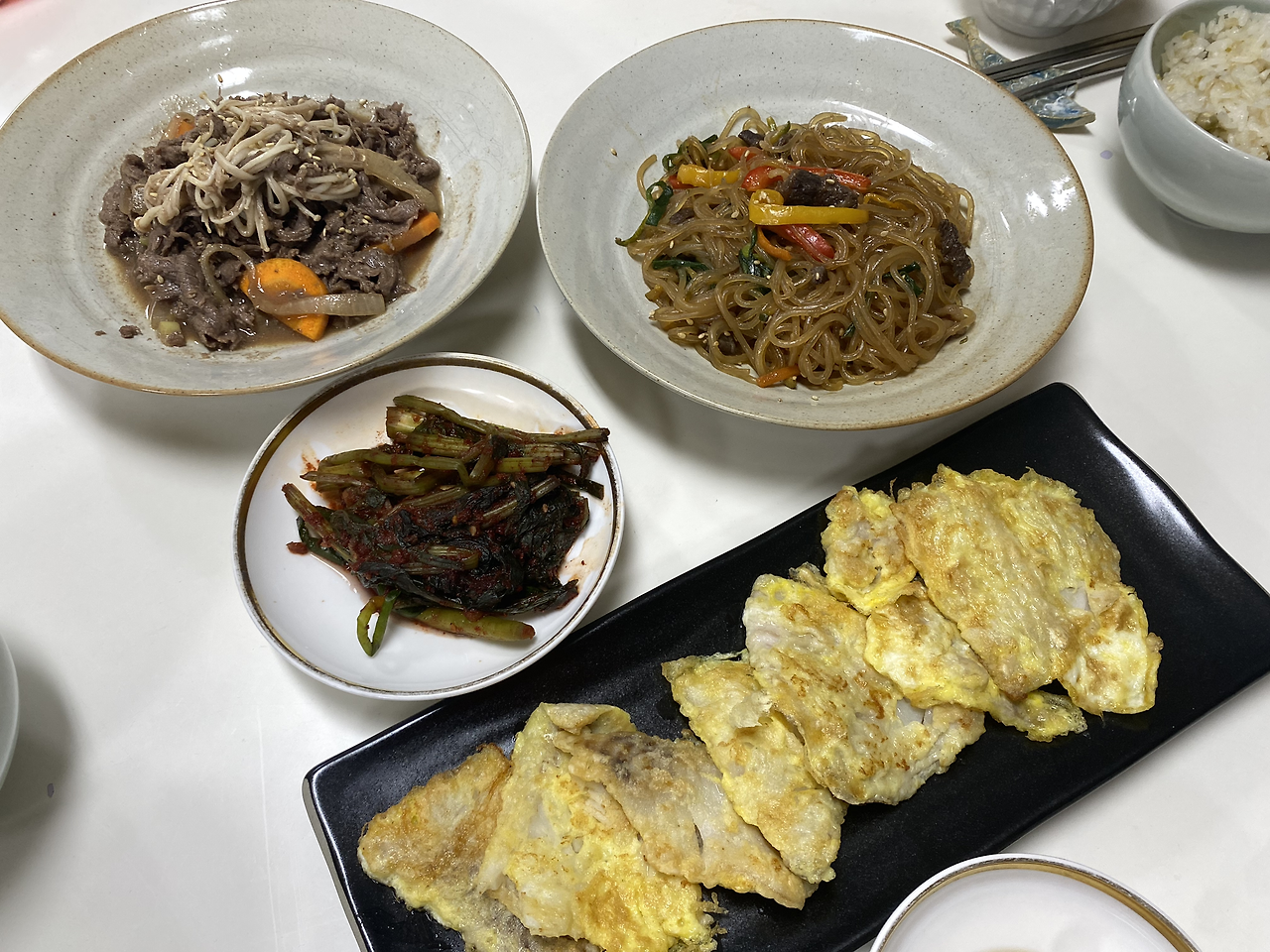 하지만 상차림은 꽤 초라했다. 동태전은 메인이라기보다 곁다리에 불가했고 모양새가 잘 살지 못했던 잡채와 불고기는 왠지 초라해 보였다. 그래도 맛있다고 해주니 다행이다 싶었다. 어떻게든 있어 보이게 사진을 찍어 시어머니에게도 전송을 완료했다. 이렇게 연중행사를 또 한 번 마무리 짓고 나니 안도감이 흘러나온다.