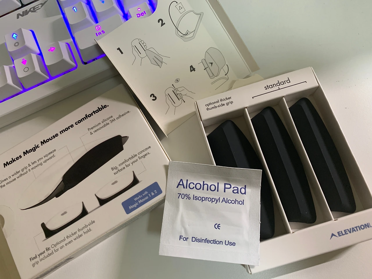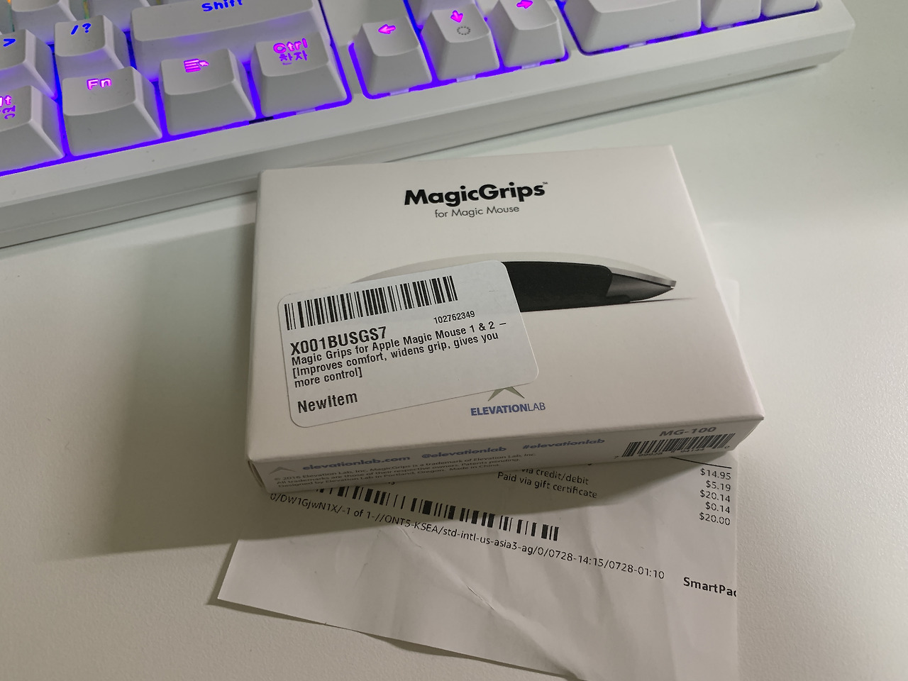 그러나 미개한 초보 앱등이인 나는 이러한 매직마우스의 장점을 제대로 누리지 못하고 로지텍 M590이라는 미니멀한 무소음 마우스로 잠시 외도를 했다. 그러다가 아마존에 20달러 쿠폰이 생긴 뒤로 이걸 어디에 쓸까 고민하다가 이 물건을 샀다. 매직그립(Magic Grips)이라는 도구다. 15달러에 배송비 5달러, 거기에 20달러 쿠폰 먹여서 실제 결제금액은 0.14달러. 166원이다. 이 정도면 완전 거저 갓성비. 서랍 속에서 조용히 잠들고 있던 매직마우스 1을 다시 꺼냈다. 후후. 붙어보자 이 자식아. 니가 먼저 망가지는지 내 손목이 먼저 망가지는지.