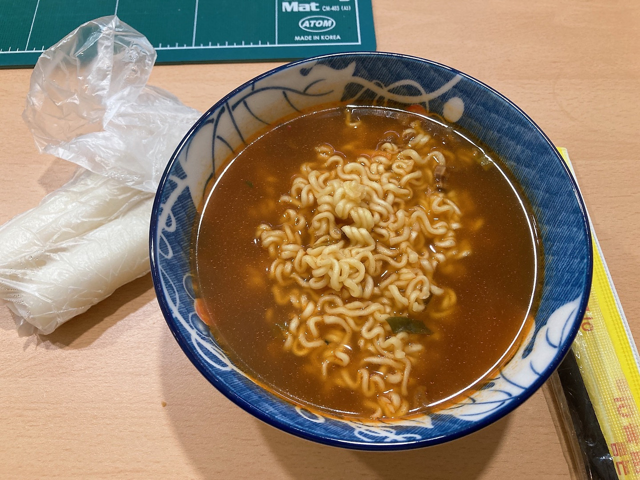 지난해 함께 일한 사서 선생님께서 추운데 식당에 가지 말고 휴게실에서 먹으라며 끓여주셨다.