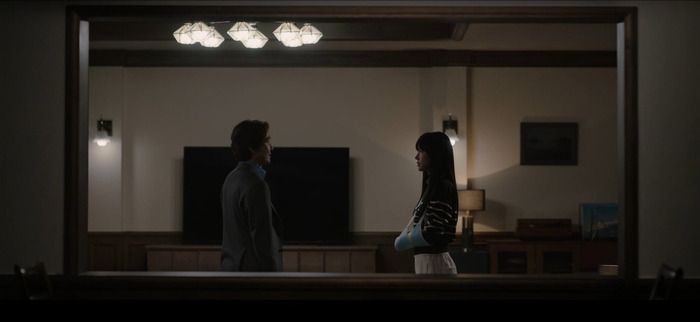 그래서 태수는 하빈에 대해 고민할 때 종종 닫힌 문 앞에 서 있는다. 집 안에 있는 하빈의 모습이 아닌 대문과 방문을 오랫동안 비추는 풀숏은 프레임에 둘러싸인 태수만큼이나 자주 등장하는 숏이다. 극 중 하빈에 대한 의심이 깊어질 때마다 카메라는 그 너머에 있을 하빈을 보여주지 않고, 굳게 닫힌 문만을 멀리서 응시한다. 이런 숏을 통해 하빈은 태수에게뿐만 아니라 시청자에게도 ‘닫힌 문’ 너머에 있는 사람이 된다.