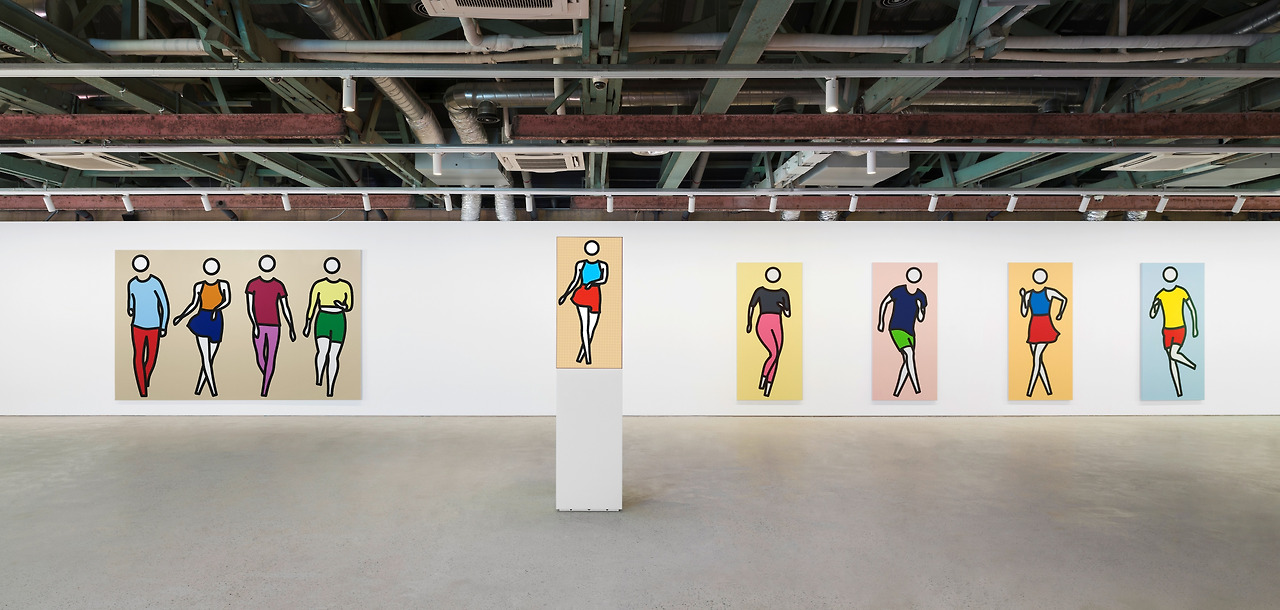 줄리안 오피는 도시를 방문해 이동하는 사람들을 관찰해 단순화된 윤곽선으로 그려낸 개인 혹은 군중의 걷거나 뛰는 모습 혹은 풍경을 촬영해 회화 및 조각으로 재해석해왔다. 이번 부산 전시에서는 작가가 2022년 여름에 부산 해운대와 센텀시티 산책로를 지나는 보행자들을 대상으로 삼아 새롭게 선보이는 신작도 포함되었다. 런던에서 코로나 봉쇄 기간을 겪으면서 빠르고 동적인 느낌의 작품을 만들고 싶던 오피는 2010년대 유행한 셔플 댄스 영상에서 착안해 엄청난 빠르기의 비트에 몸을 맡기고 춤추는 사람들을 담아냈다. 이번 전시는 회화, 조각, 모자이크, 영상, VR, 그리고 라이브 퍼포먼스 등의 다채로운 작품군을 선보이며 디지털 매체와 새로운 기술에 대한 작가의 지속적인 관심 및 작품세계를 총망라한다. 조각은 보다 입체적으로 펼쳐진다. 증강현실(VR)이라는 신기술에 힘입어 대상을 다시금 입체화한 석천홀의 체험은 놓치지 말아야 할 백미다. 일상에서 비일상을 찾고 특별함을 발견해 온 오피의 습관에 동참해 보면 어떨까.