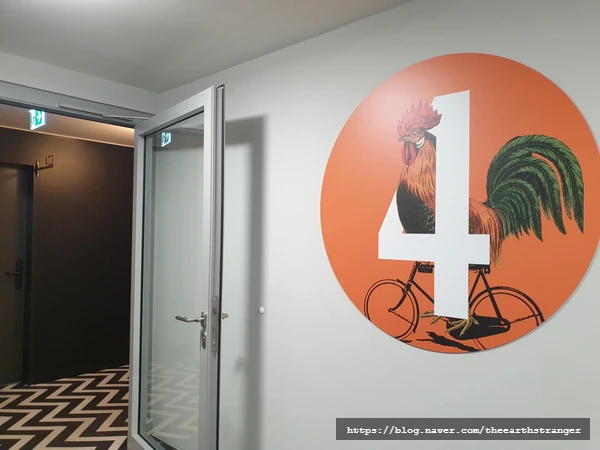 내가 묵은 객실은 4층. 4층으로 올라가자 복도부터 방까지 디자인이 참 북유럽스럽고 깔끔하다.