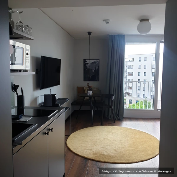 사실 숙소를 엄청 미리 예약한 게 아니라 호텔 옵션이 그리 많지 않았다. 시내에 있는 호텔들은 혼자 1인실에 머무르기에는 가격이 조금 비쌌고, 에어비앤비는 그닥 선호하지 않아 어딜 갈까 하다가 괜찮은 옵션 발견! 아파트형 호텔인데 작지만 부엌도 있어서 조리가 가능하고 지은지 얼마 안되서 후기 속 사진들이 꽤 깨끗하고 모던해 보였다.