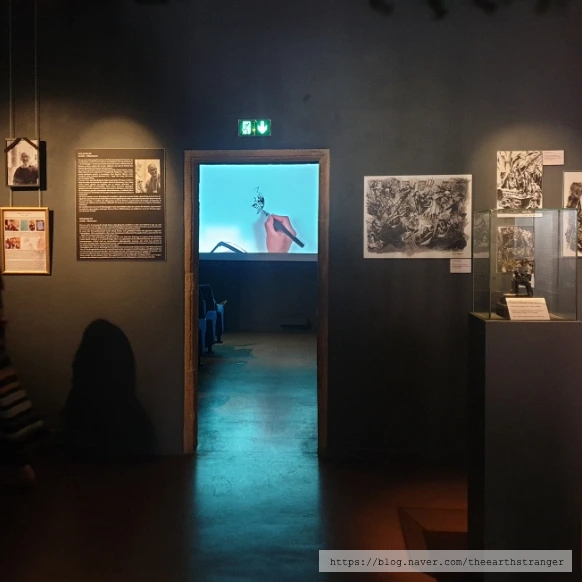 인상 깊었던 박물관의 작은방. 한국 작화가 분이다. 아마도 돌아가신듯한데, 작은방 하나가 그분의 드로잉과 영상 등으로 꾸며져 있었다. 배트맨과 조커가 있는 드로잉 그리는 것을 처음부터 끝까지 영상으로 보여줬는데 정말 대단하다고 밖에...!