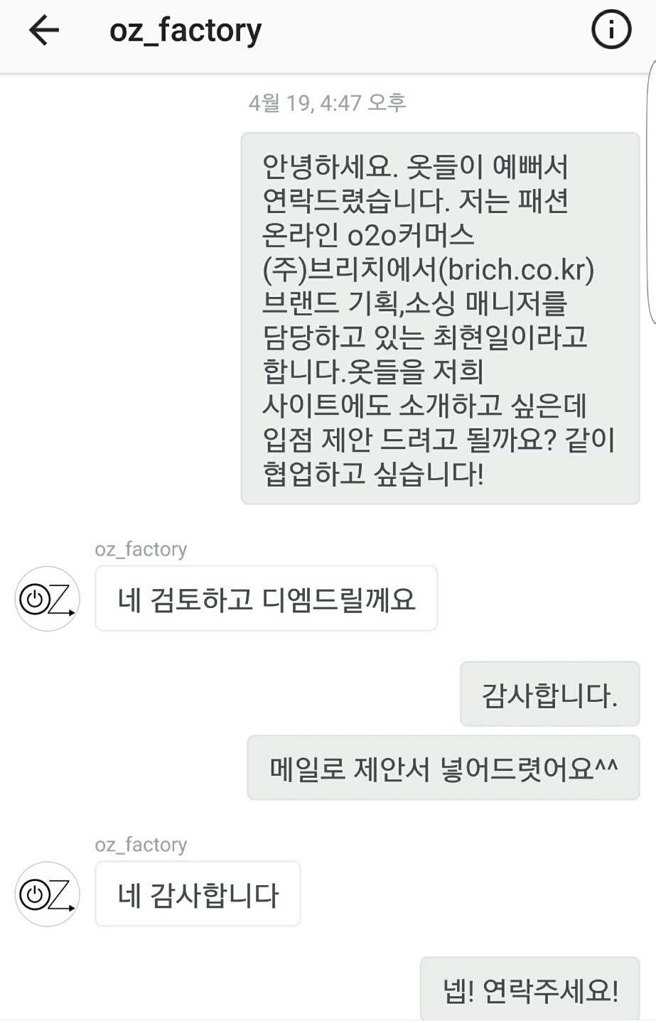 그래서 온라인쪽 디자이너 브랜드를 영업할 때에는 '인스타'채널을 활용하여 다이렉트로 영업을 했고 계약 전환율도 좋았고 모바일로 소싱하는 느낌이 꽤나 재밌었습니다. 그리고 인스타 오피셜에 보면 카톡 계정이 있는데, 카톡으로도 영업을 진행하였습니다. 좀 더 즉각적이고,실시간의 성격을 가진 채널을 활용해서 영업을 전개하니 속도가 굉장히 빨라졌습니다.