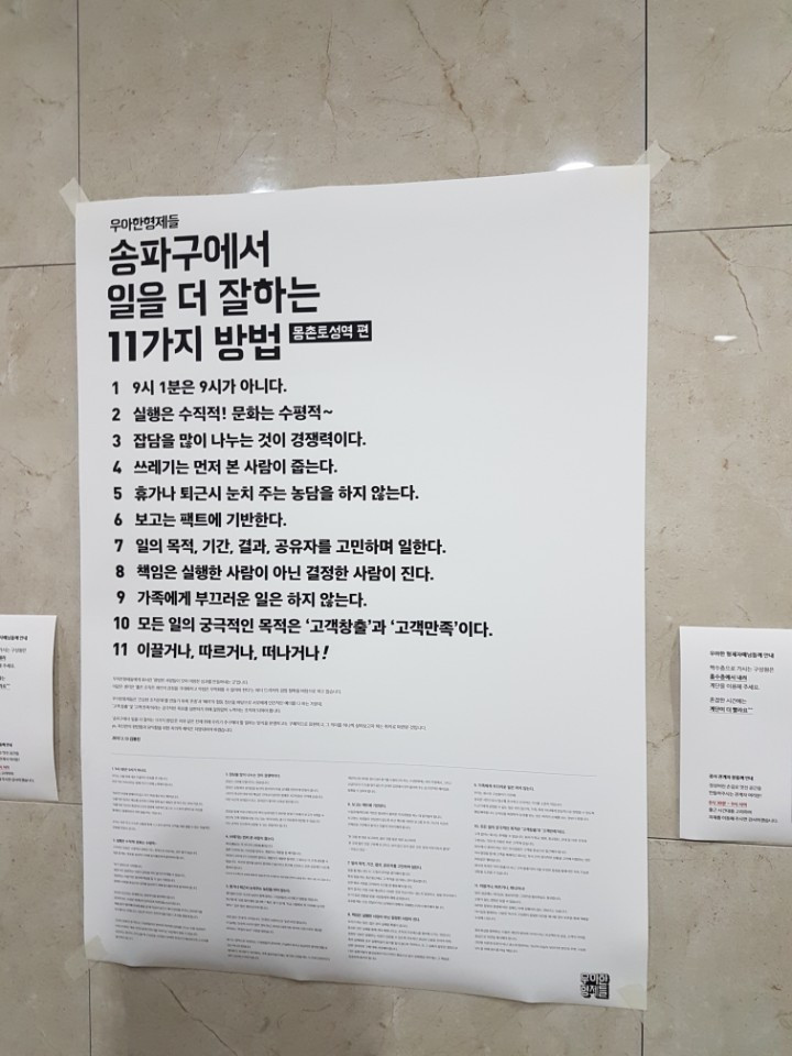 배민팬클럽 배짱이2기 환영회가 있었다. 필자는 배짱이 팬클럽 2기다. 이 팬클럽 행사가 끝나고 난 후 배달의 민족의 회사에게 정말 감사한 마음이 들었다. 이런 회사가 한국에서 존재할 수 있고 이런 실험(?)들을 할 수 있는 것에 존경심이 들었다. 게다가 엄청난 자본력이 있는 대기업도 아닌 스타트업이 말이다. 이때까지 대한민국의 경제를 큰 부분을 이끌어왔던 대기업은 정부와 결탁하여 온갖 비리를 만들어냈고 한국의 넘버원인 회사 삼성의 수장은 대한민국의 낮은 기업 문화 수준을 보여주었다.