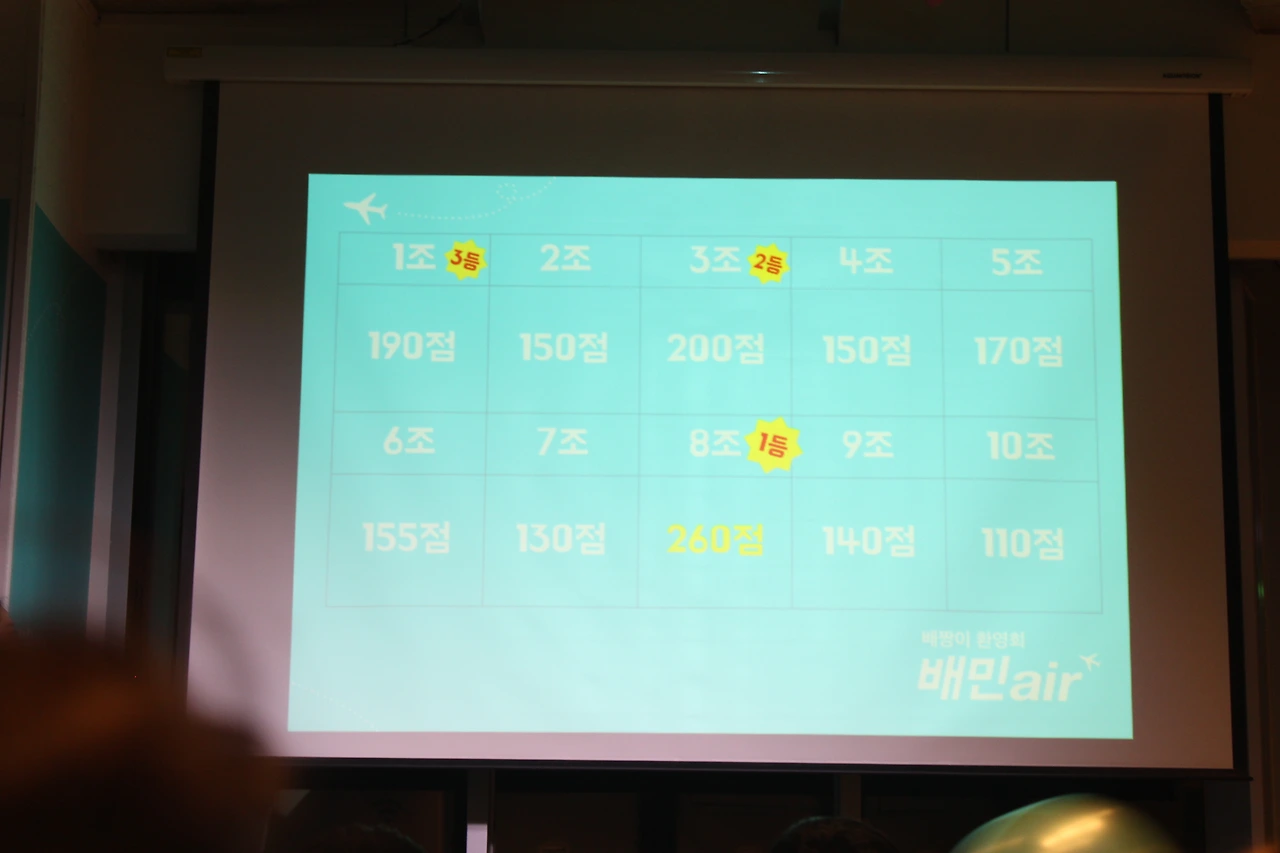그리고 아까 미션 게임 시상식이 진행되었다. 우린 3조!