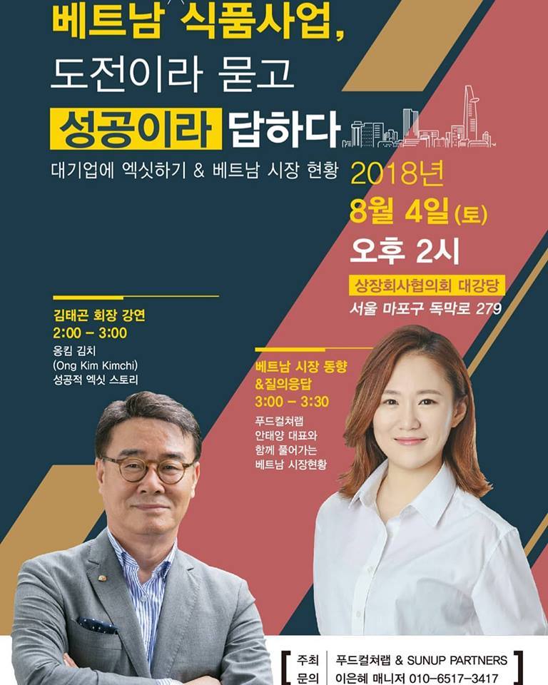 왜 CJ에 매각했나? CJ가 동남아에 진출을 해야되니깐 그 진출지를 베트남으로 진출하고 CJ재단이 식품 사업으로 진출해야되는데 김치, 두부 등.. 들어가야겠고.. 우리 브랜드는 옹킴 김치. 이 옹이 나이 많으신 옹. 그런데 우리는 김옹 최옹 박옹 이런걸 높은 사람한테 쓰지만 미스터를 번역하면 베트남으로 옹이 된다. 그래서 처음 20개 낼 때 브랜드를 등록해놓고 시작했다. 옹킴, 미스터킴 등록해놓고 시작했다.