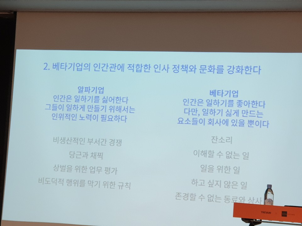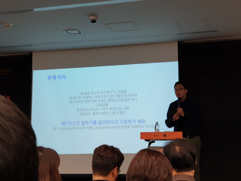 기존에는 "인간은 일하기를 싫어한다고 가정하기 때문" 에 하이 퍼포머는 나가고 로우 퍼포머는 잔류를 초래하여 악순환. 즉. 밀레니얼 세대와는 거리가 먼 기존 기업의 조직 문화. 경쟁.. 상벌.. 내부적으로 경쟁.. 이런 인간관이 있었던 것 같다. 밀레니얼 세대들은 불의를 보면 절대 참지 않는다. 대기업 신규 입사자 퇴사자율이 44%. 더 이상 참지 않는다 회사가 나를 책임져주지 않기 때문에. 근데 이전에는 회사가 대학보내주고 하니깐..