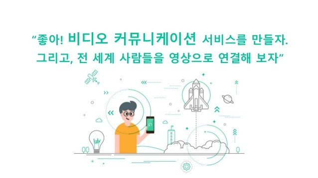 "비디오 커뮤니케이션 서비스를 만들어보자" 전 세계 사람들을 연결해보자. 손바닥 위의 지구촌을 만들어보자.