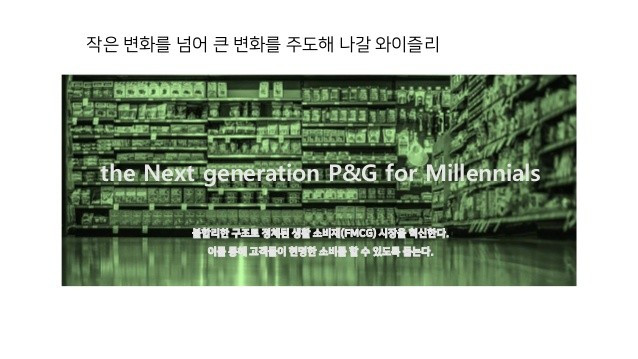 생활 소비재 시장은 스타트업이 잘 등장하지 않는다. P&G, 아모레시픽 등이 독점하고 있는 구조. 우리는 the Next generation P&G for Millenials.