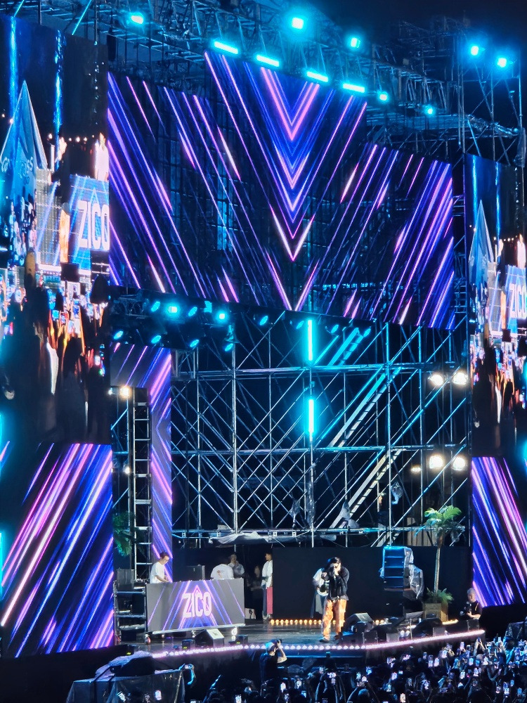 전라도에서 온 충만치킨은 간장도 후라이드도 참 맛있었다. 느끼한 기름맛없이 고소한 치킨향을 풍기며 바삭한 식감을 전해 주었다. 생맥주 잔을 부딪치며 건배를 하고 치킨을 나눠 먹었다. 공연은 8시쯤 시작되어 조금 있으려니 어둑해졌다. 배를 채우고 나서 본격적으로 댄스 타임을 가졌다. 박명수가 아는 노래를 몇 곡 틀어줘서 어렵지 않게 아는 언니와 축제 분위기를 한껏 느끼며 신나게 댄스타임을 즐겼다. 아침에 내린 비로 기온이 내려가서 저녁 시간이 되니 선선하고 바람도 가끔 불어 뛰기 좋은 날이었다. 딱 좋은 바로 그런 날이었다. 지코는 콘서트 식으로 관객과 소통하며 <아무 노래> <삐딱하게>등 여러 곡을 불렀다. 앞쪽에 자리 잡은 30대 초반의 남녀커플은 잠시도 쉬지 않고 음악에 맞춰 몸을 흔들었다. 함께 음악과 춤을 즐기는 모습이 멋지고 행복해 보였다. 싸우지 말고 오래 행복해라. 마음속으로 그들의 행복을 기원했다.
