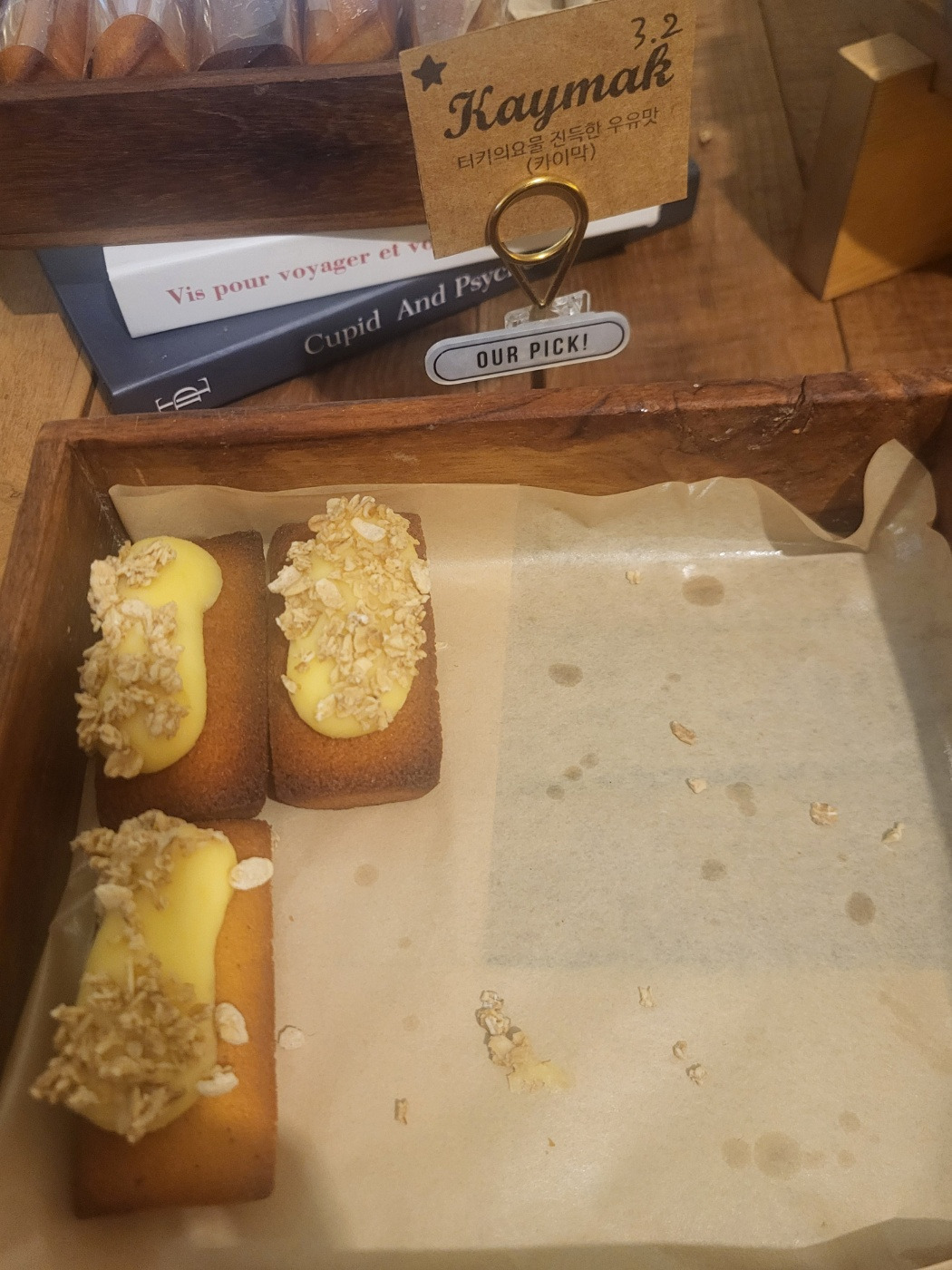 요즘 세계화 시대에 맞춰서 여러 나라의 디저트가 인기를 끌고 있다. 카페나 식당 이름뿐만 아니라 그곳에서 파는 메뉴 역시 본고장의 특징을 살린 경우가 많다. 출근해서 컴퓨터나 태블릿 화면을 보며 일하다 보면 식사 때가 되기 전에 허기가 진다. 흔히 말하는 커피 수혈로 당을 끌어올릴 때가 온 것이다. 요즘은 현재의 행복을 중시하는 흐름이 보편화되어 커피와 함께 파는 예쁘고 맛있는 작은 베이커리 메뉴가 많다. 물론 그런 빵을 파는 곳 역시 개성을 갖춘 인테리어를 구비하여 일상에서 벗어나 휴식을 느끼는 공간으로 자리매김하였다.